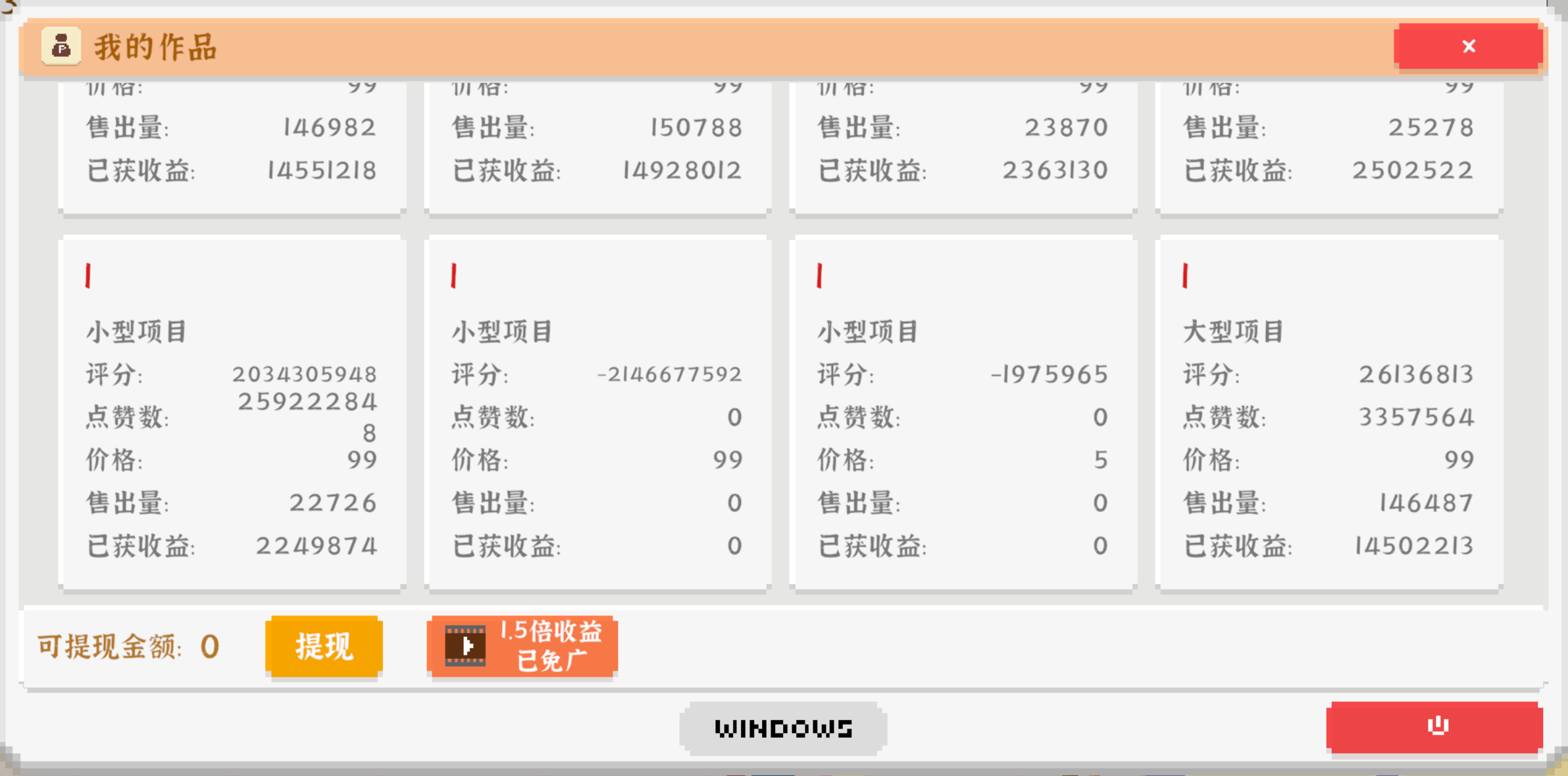4.(娱乐)负数评分作品如何收益?(数值超过2的31次方-1将会变为负的2的31次方-1再接着计算数值)