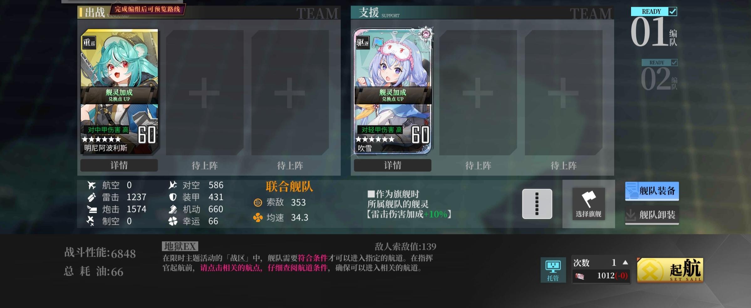 一队单纵二队机动,出战顺序111121。