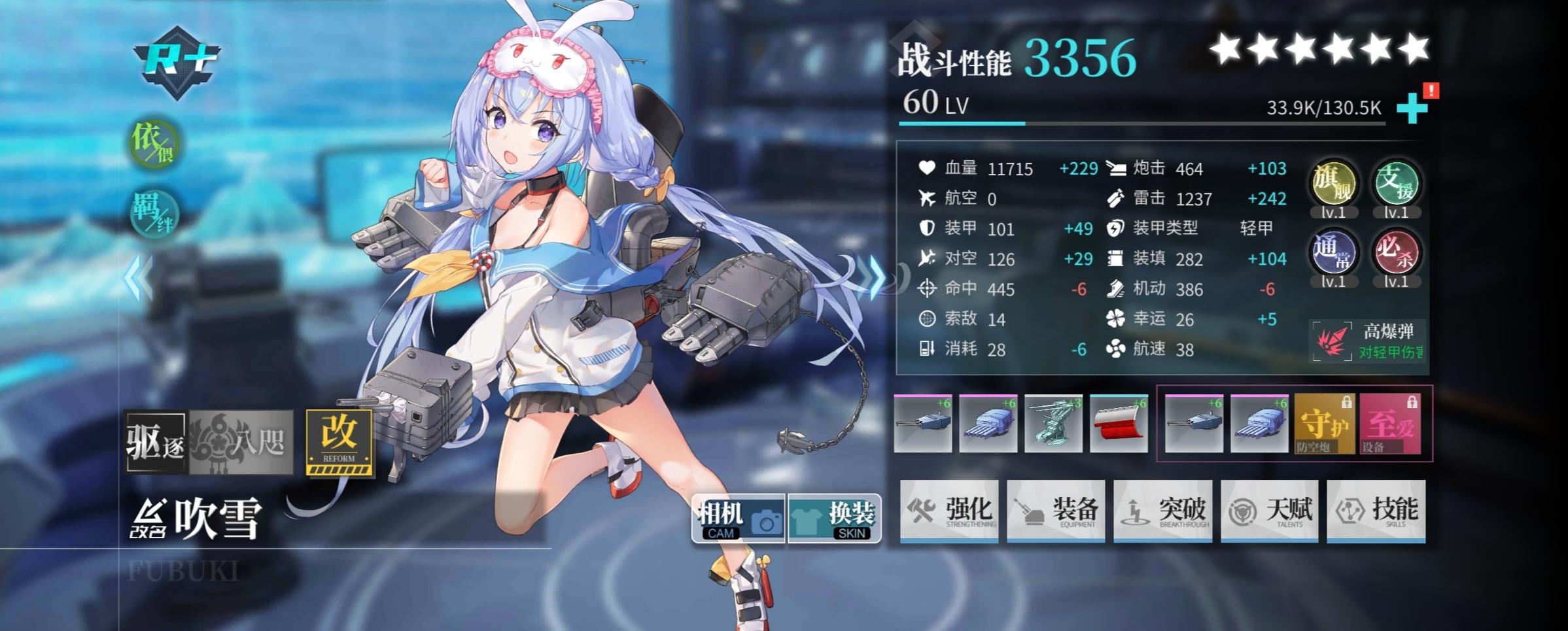 二队后排等级和血量需要够高,否则容易被自爆船炸残。建议携带装甲。以图示吹雪练度为例吃一发自爆船-200hp,自爆船全收仍能确保血线健康。