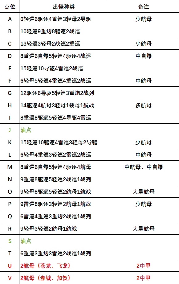 两个boss点均无夜战,理论上利好航母,但考虑到油点的存在更推荐将油点前一战让给油耗偏高的航母队,底关的中甲航母依然由明尼处理,非常轻松。