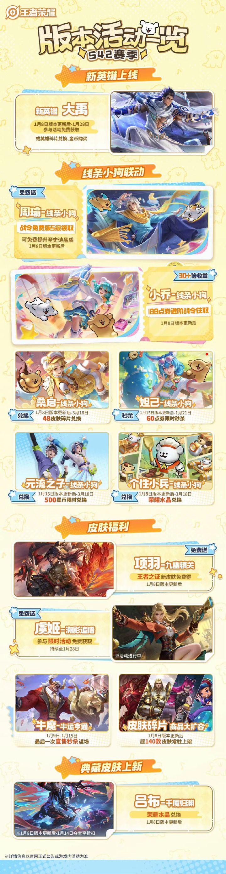 2026年1月8日,王者荣耀正式开启S42赛季“神佑建木”,同步上线五款新皮肤,涵盖荣耀典藏、战令限定、赛季皮肤及赛年福利,其中三款可免费获取,进阶战令价格降至188点券。