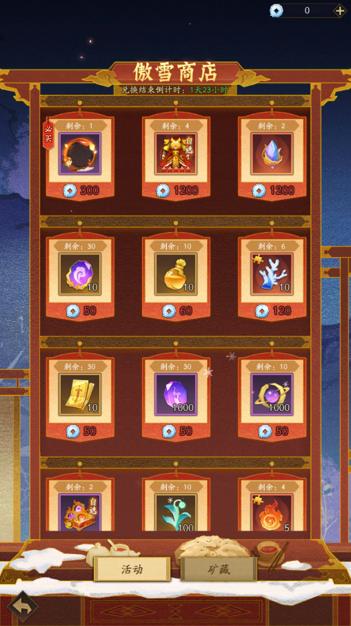 活动期间,道友们通过使用「凌霜币」在【傲雪商店-活动】中兑换「松檐雪坠」全新头像框、红品五星装备自选、幻彩石、法魄珠、玄灵露、玄灵玉髓、觉醒符、魂灵等超值好礼!还可使用「灵矿币」前往【傲雪商店-矿藏】中兑换兑换傲雪奇宝自选(内含御灵碎片16选1、神兵碎片20选1)、重铸石、幻彩石、玄灵露、玄灵玉髓、法魄珠等超值好礼!道友们走过路过千万不要错过啦!