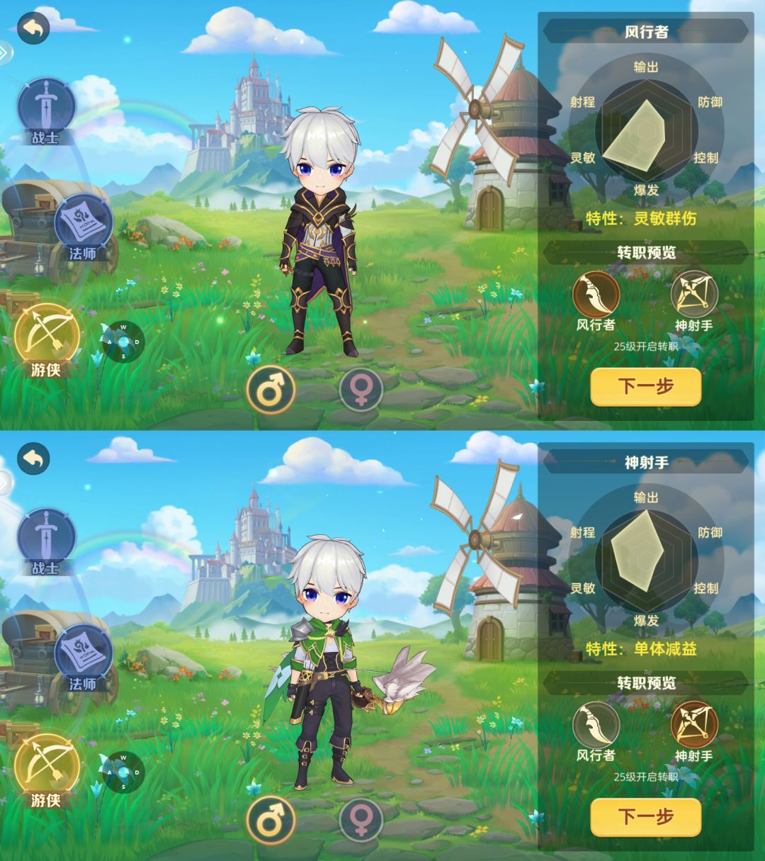 转职的细分也会在属性上有一些差别。
