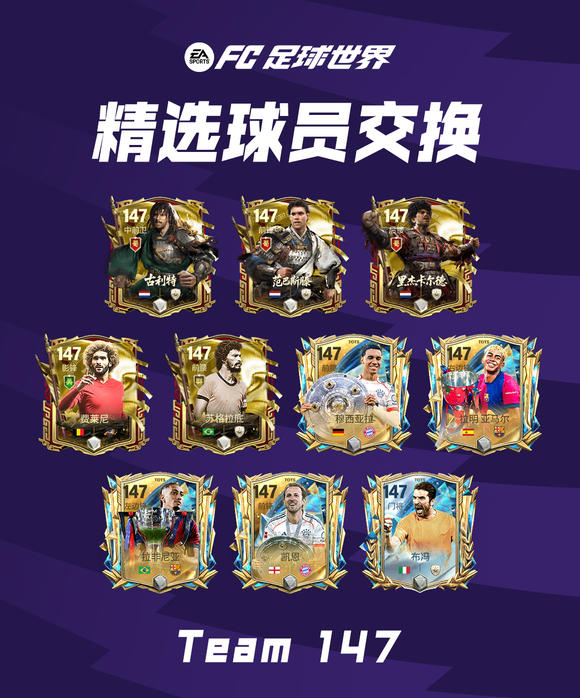 1月8日10:00-1月22日10:00,玩家可以参与143-147能力值,全新一期的精选球员交换,每个能力值的卡池限量交换2次。包括“荷兰三剑客”古利特、里杰卡尔德、范巴斯滕在内的众多顶级球星等你来拿!