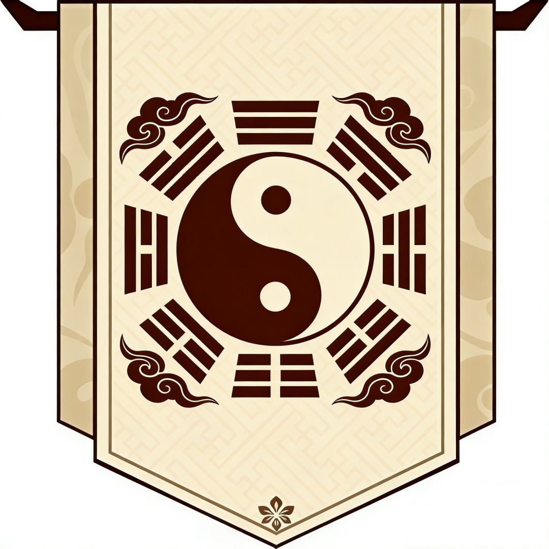 此旗为玄元道盟镇盟之徽,融道家太极八卦之精髓,凝天地阴阳之奥义。旗心太极,黑白相抱、鱼眼相照,是为“道生一,一生二,二生三,三生万物”的宇宙本源,亦为盟中弟子修心炼道的根本——守阴阳平衡,方得道法自然。