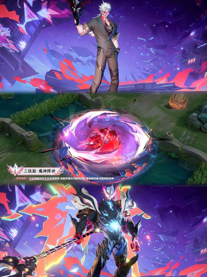 ✅️出场动画里人形态觉醒为魇兽的变身过程,铠甲迸裂烈焰的画面冲击力直接拉满,视觉张力绝了。