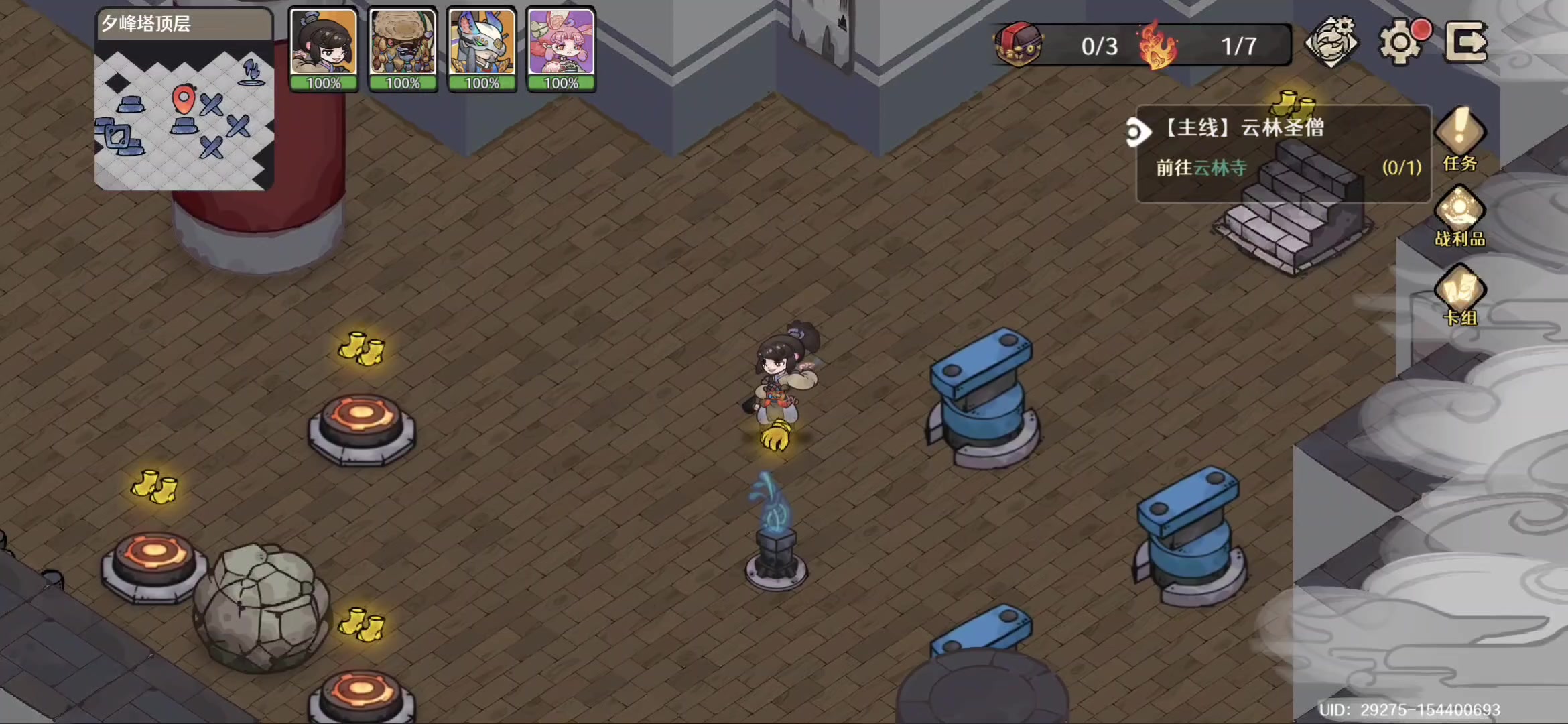 夕峰塔顶层解密-踩圆盘+推石头