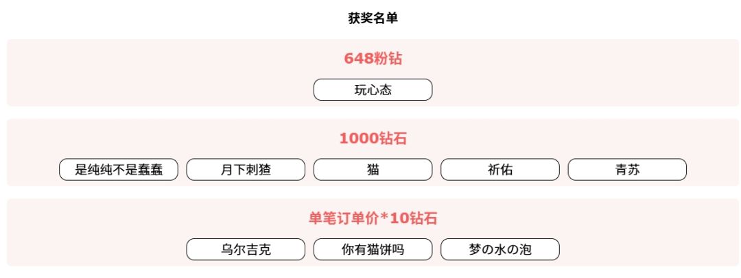 随机抽取3位勇者,赠送该账号内单笔订单单价最高的礼包金额x10的钻石数量;