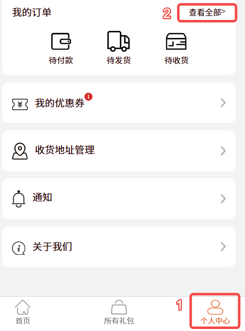截图示例:打开 个人中心-我的订单(查看全部)
