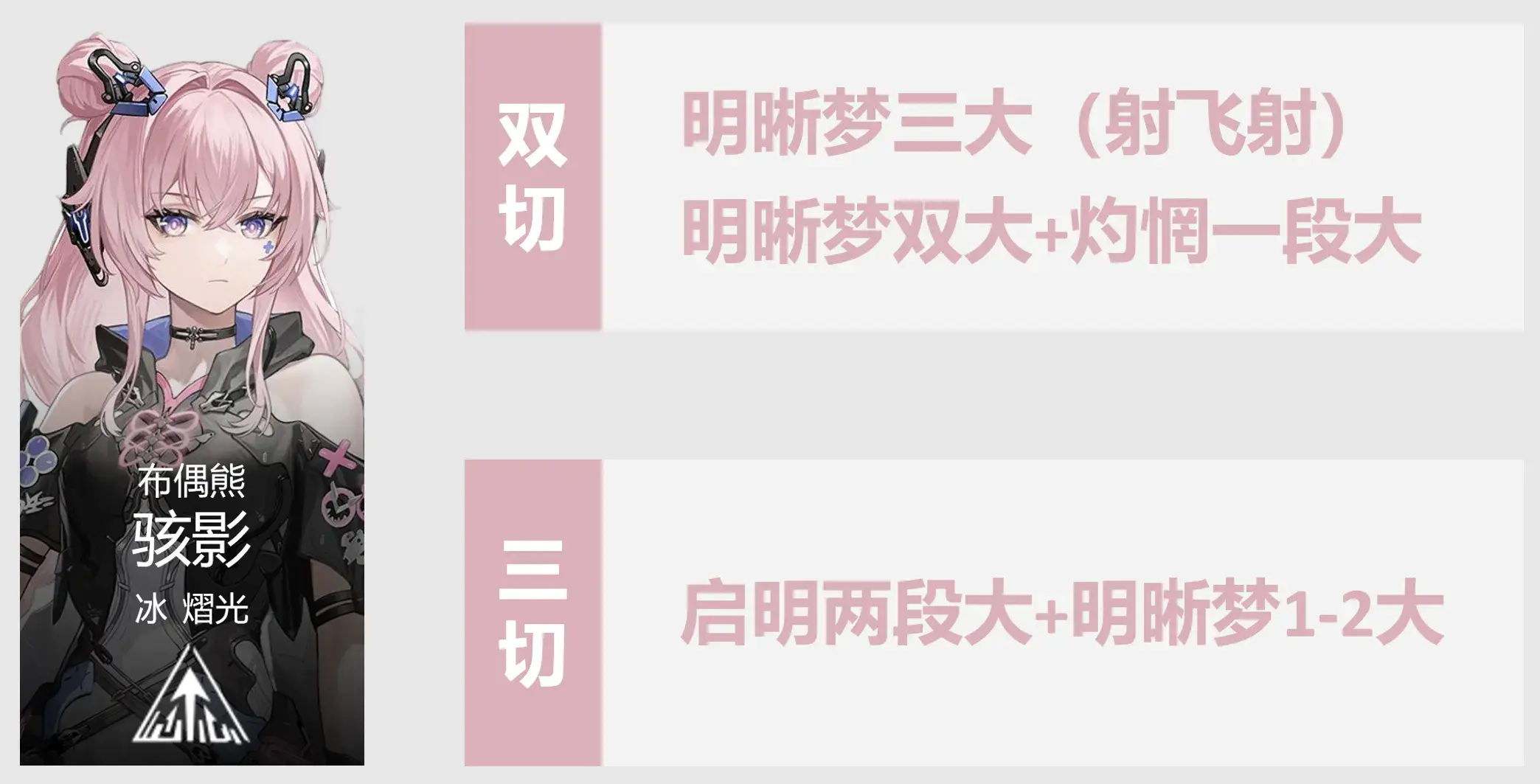 三切流程需要有一定的配置基础,最好有3s明晰梦。采用启明→明晰梦→骇影的切人顺序。