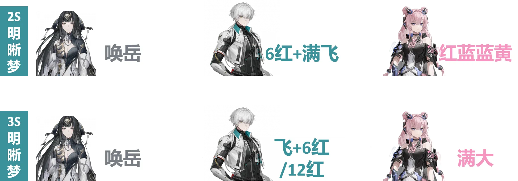意识搭配,布偶熊4乔安娜提供基础加成,4辰积原补足伤害乘区,同时弥补减抗覆盖不足的问题,共鸣攻击力+大招。