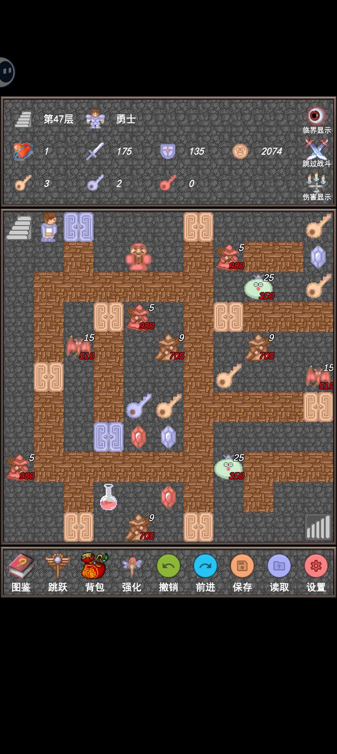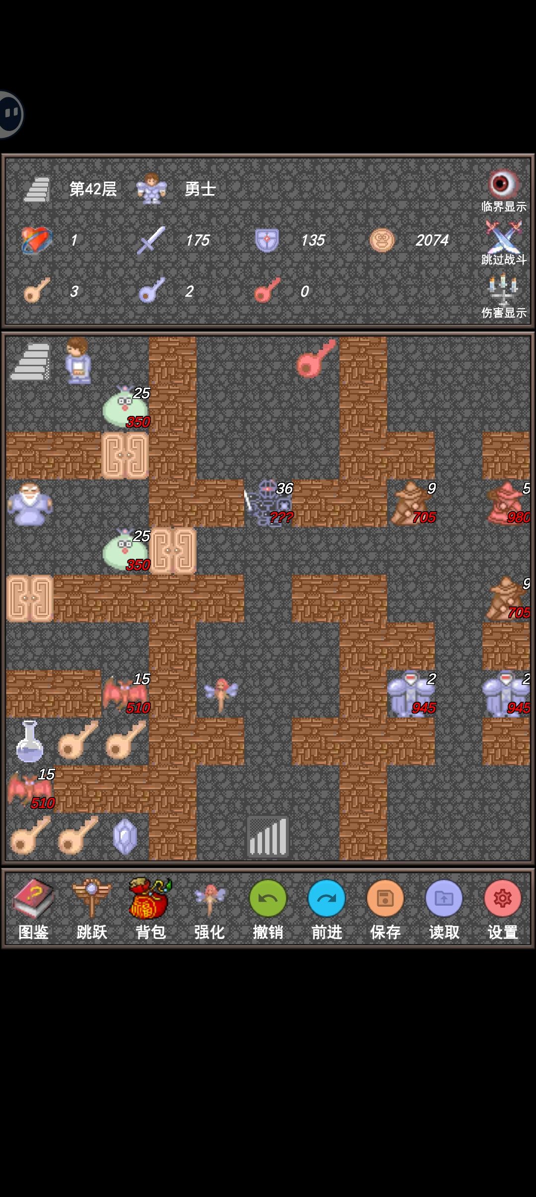 上 41 层后就不要吃血瓶了,有些怪会扣血,血量尽量在打之前的怪刚好够用,到 1 滴血就不会扣血了