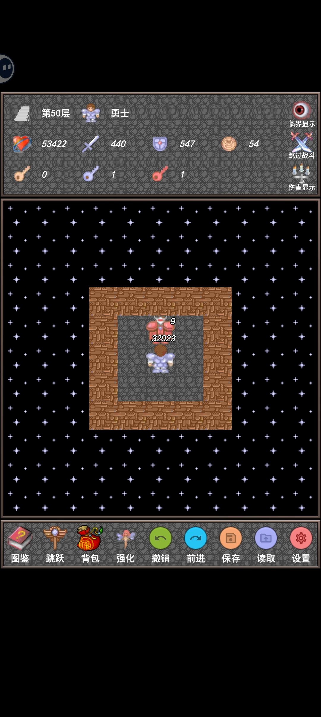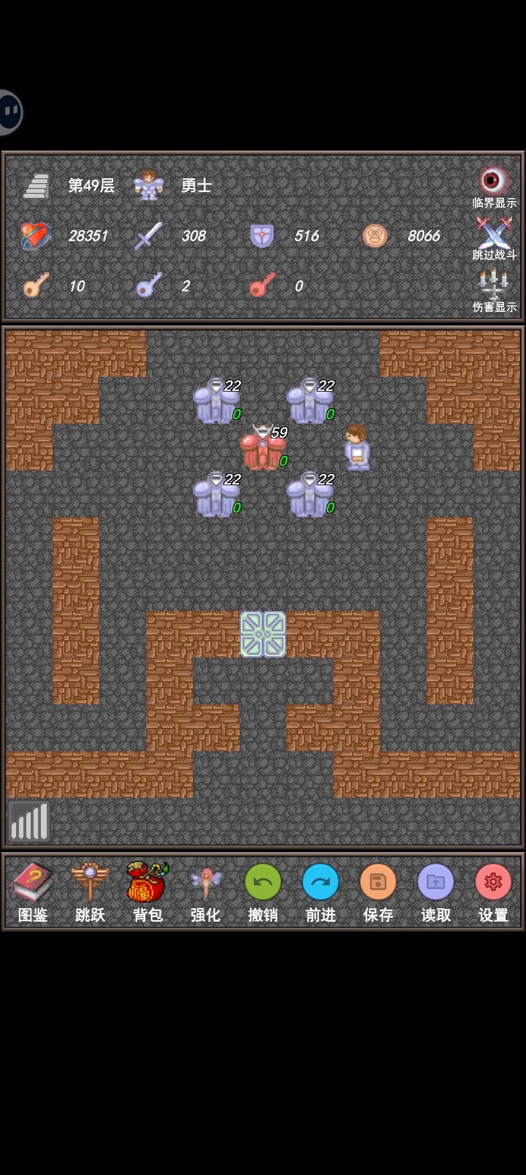 19、49 层先把上下左右四个怪打完,魔王就会变弱(第八张图)