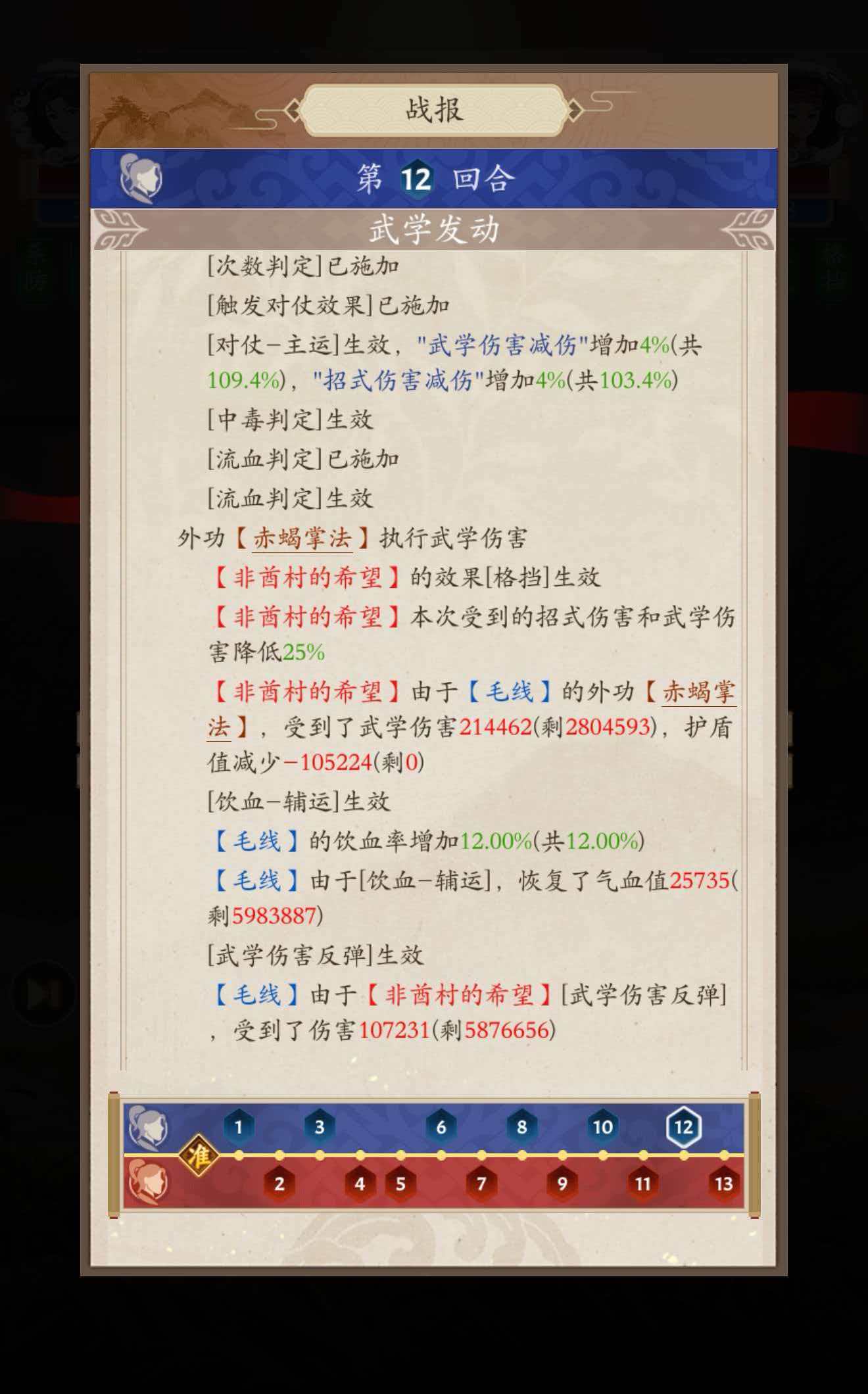 这套配招中,减伤有无名心法的闪避(1勾,不用担心拉不起),主运的文华(20%武招减)、登天(22.5%武减)、白马(17.5%四系减)、飞鱼(10%四系减)、锦鼠(13%武招减)、金蛇(16.5%武招减),搭配铁甲、邪魔的减伤就可以将武学减伤堆的非常高,并且利用无名心法锁住阳四系的旺旺或者金身,实现防守反击