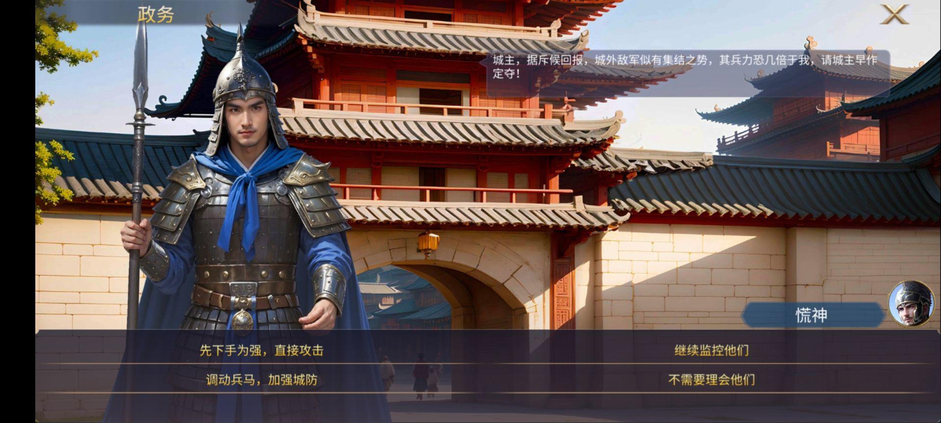 选择:调动兵马,加强城防。可获得中级经验书10、安定值+2选择:先下手为强,直接攻击。可获得:中级经验书15,银币20000、步兵预备兵2000、安定值+8