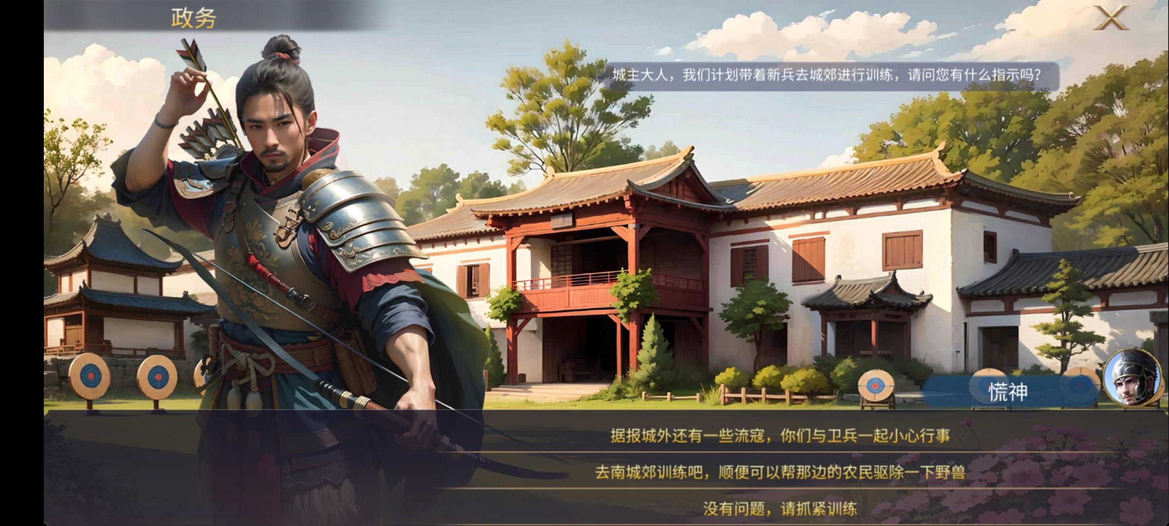 选择:没问题,请抓紧训练。可获得:弓兵预备兵1000、安定值+1