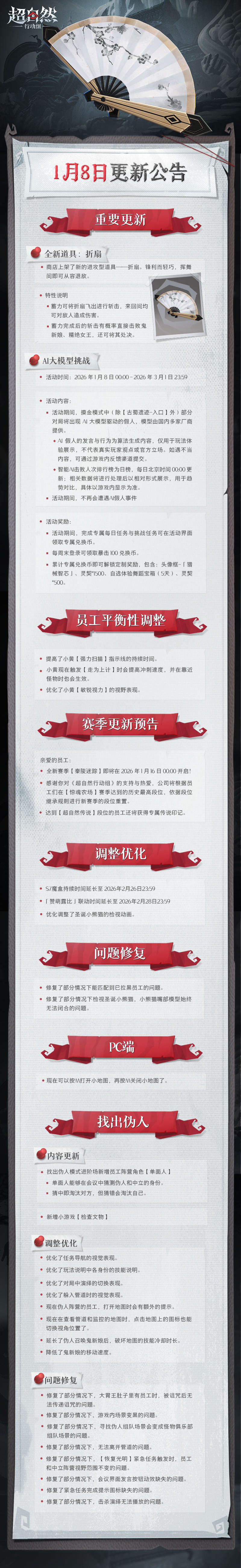 1月8日更新——新道具【折扇】上架!AI假人大模型挑战即将开启!