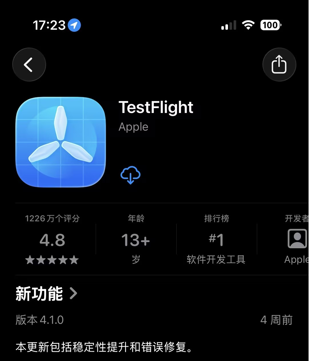 - 确保您的设备已安装 “TestFlight” App(可在App Store搜索下载,请见下文)。