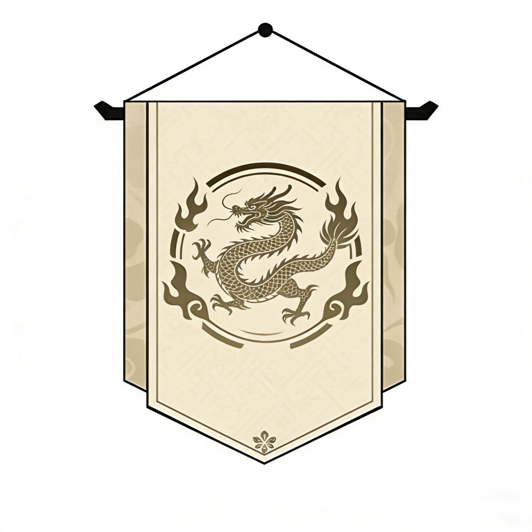 - 配色与穷奇旗相近,但金色纹样的占比更高,让神龙的神圣感和视觉存在感更强,契合宗门核心装饰的定位。