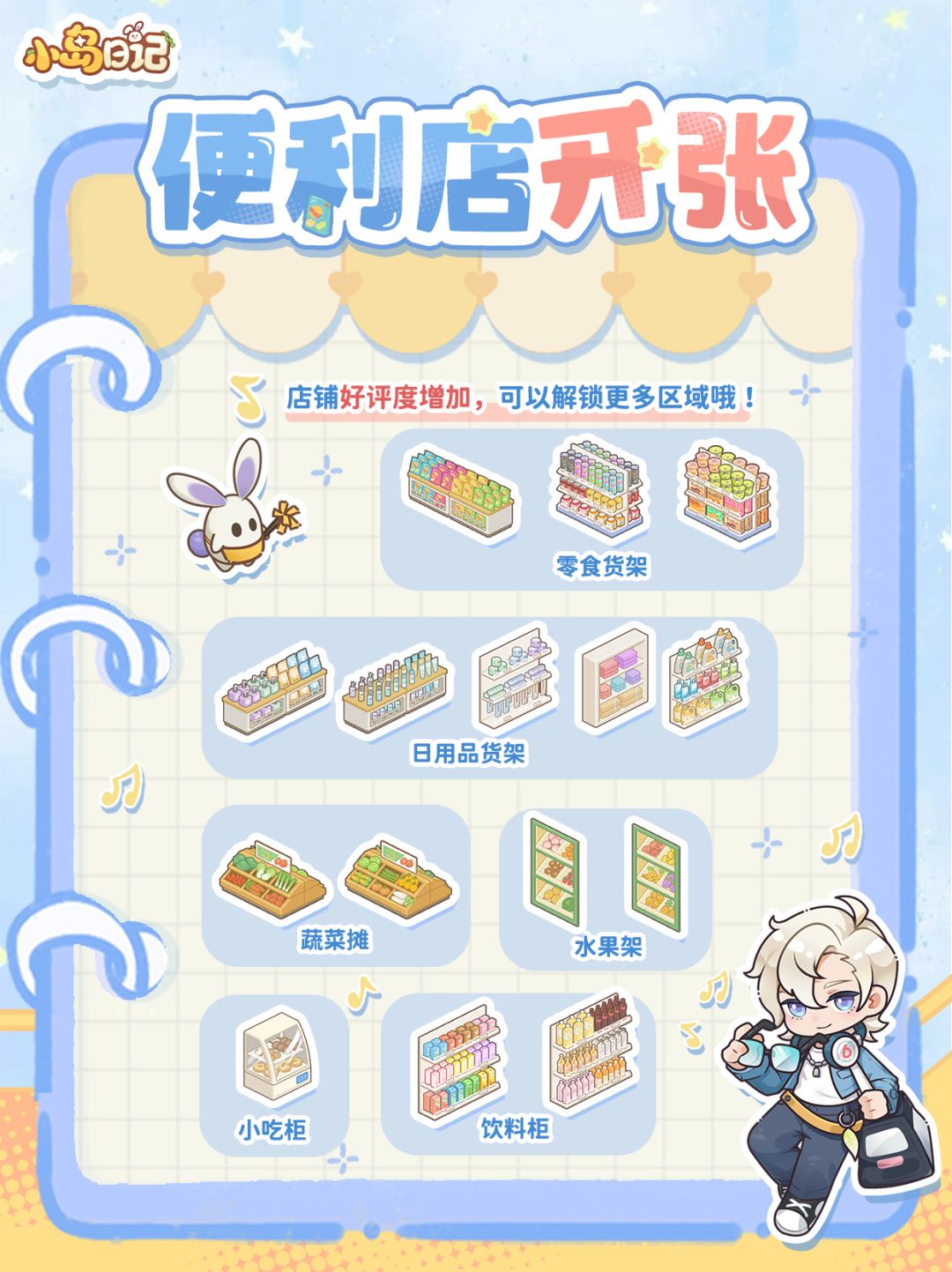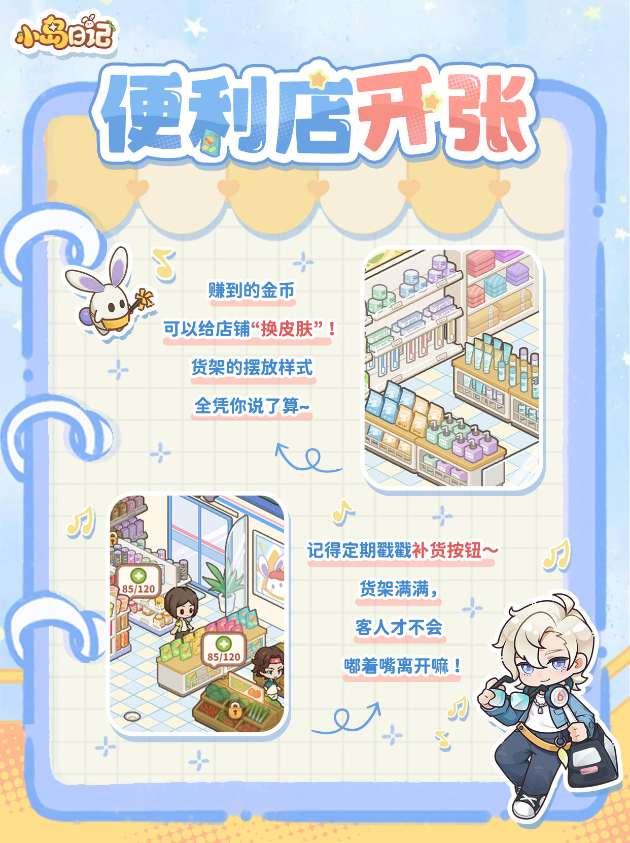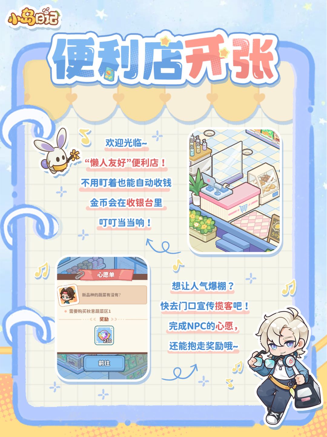 预约小岛日记,并在评论区告诉福福你最想在便利店解锁的玩法或商品,福福会揪2位岛民送出“旅行打卡棒”一份~