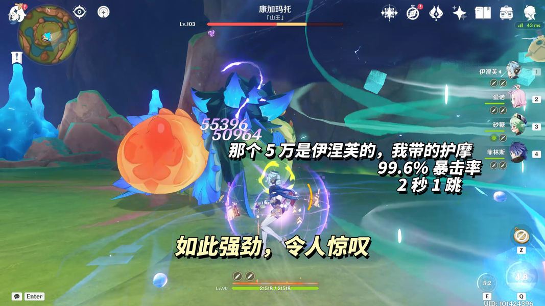 在月感电玩法中伊涅芙占据核心位置,提供护盾、先手雷利于砂糖风套减抗、14%月感电基础伤害提升、100精通拐、自身2-3万DPS贡献。