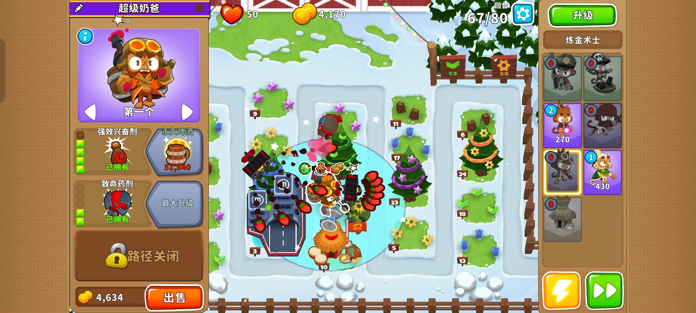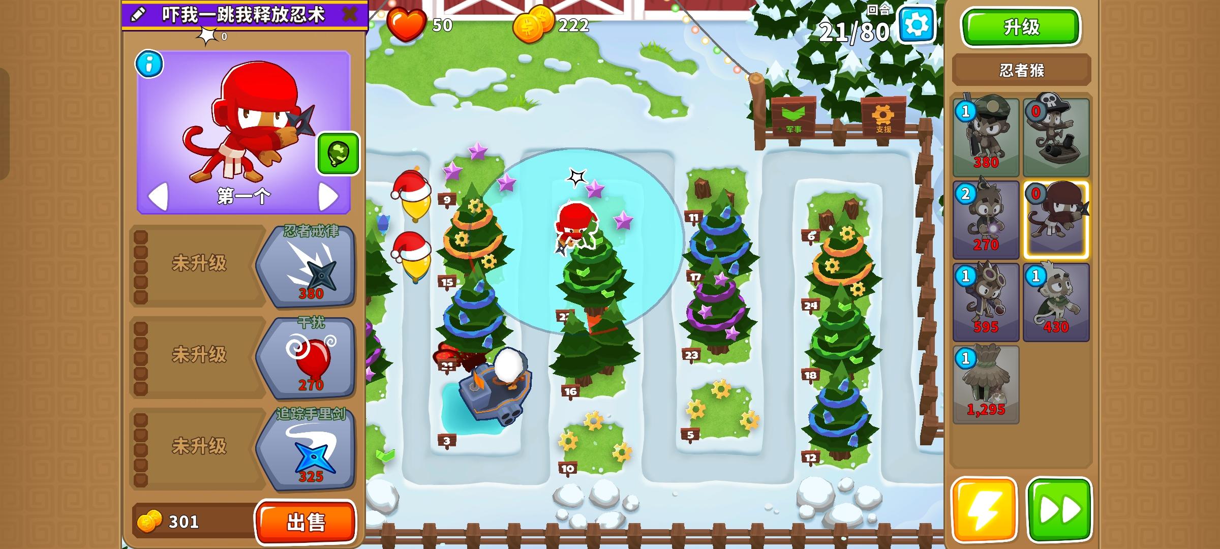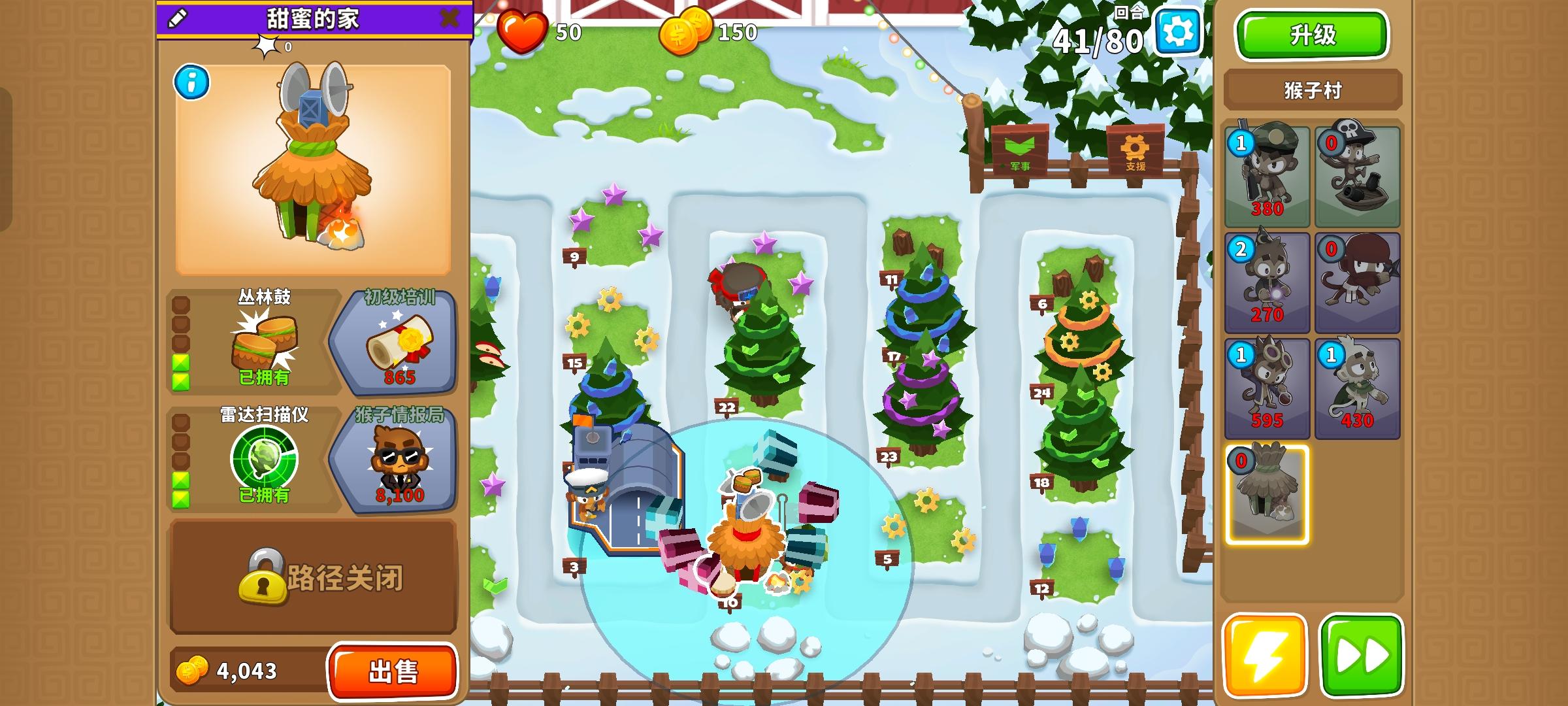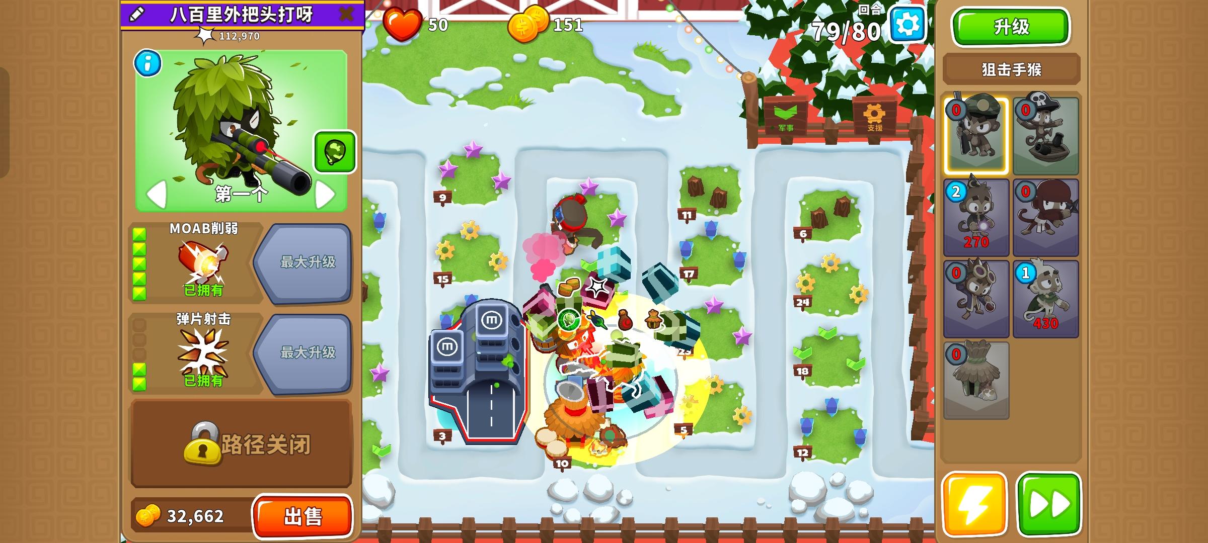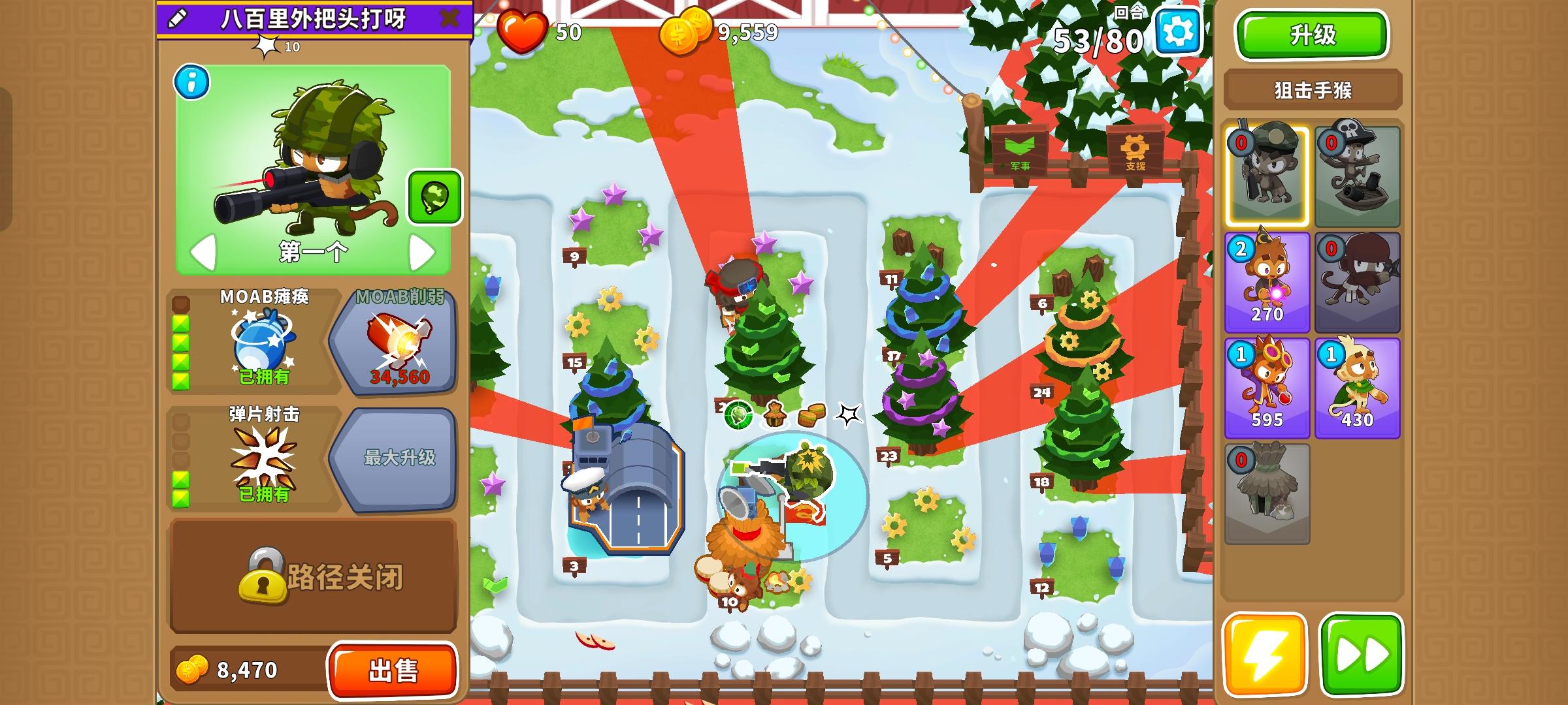 只需带上狙击手猴,海盗猴,2法师猴,忍者猴,炼金术师,德鲁伊和猴子村就行,无需其他猴子。