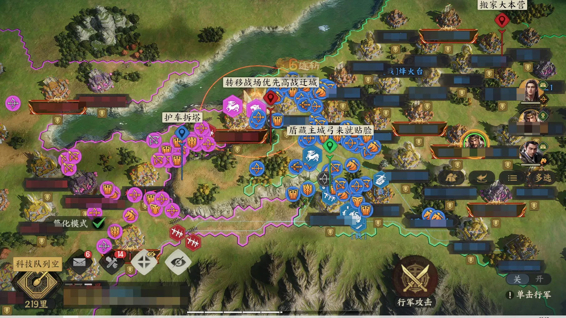 开局直接剑走偏锋,S3-4区这波操作可把九妹看懵了。资源州刚一开放,【天空之城】就选择不走寻常路。俗话说最好的防守就是进攻,他们直接全员奔向【情义阁】的前沿阵地,硬是把人家的铺路进程给断了。不过【情义阁】并未上头,他们灵活走位,一边稳住防线一边找机会夺城发育。
