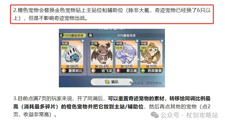 介绍中提到同调功能中,橙色宠物会取代掉金色奇迹宠物放到主站位,从而获取更多的属性!(而且是白嫖的属性,不需要额外消耗资源)