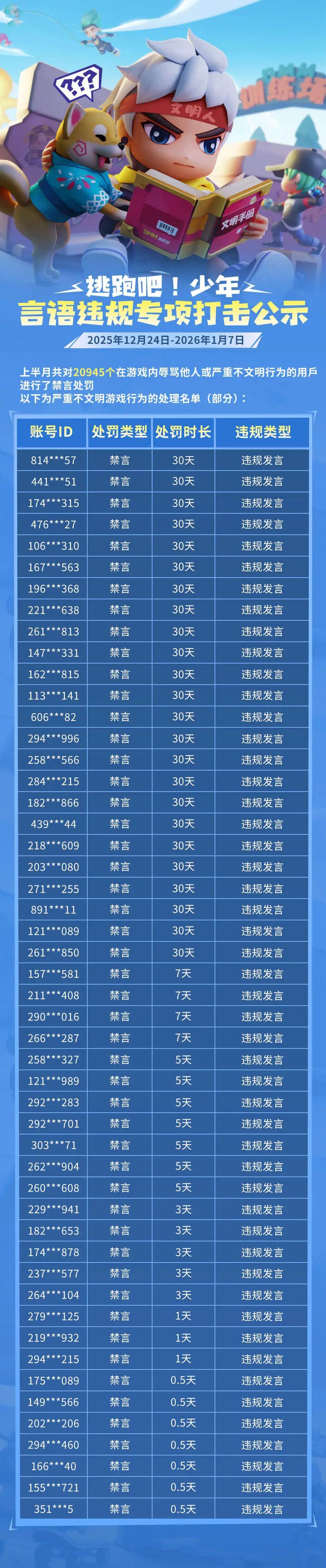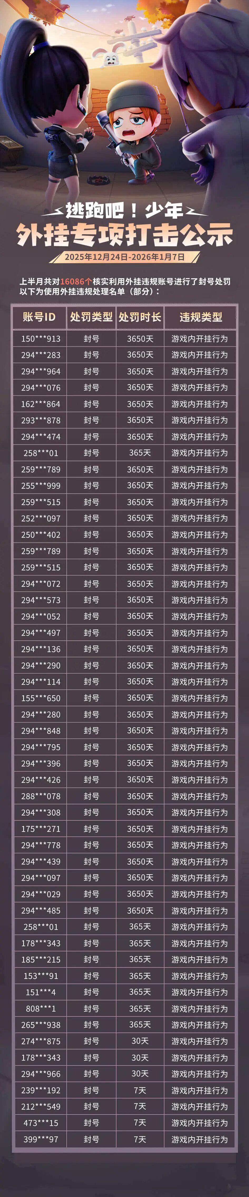 游戏安全处罚公示(12月24日——1月7日)