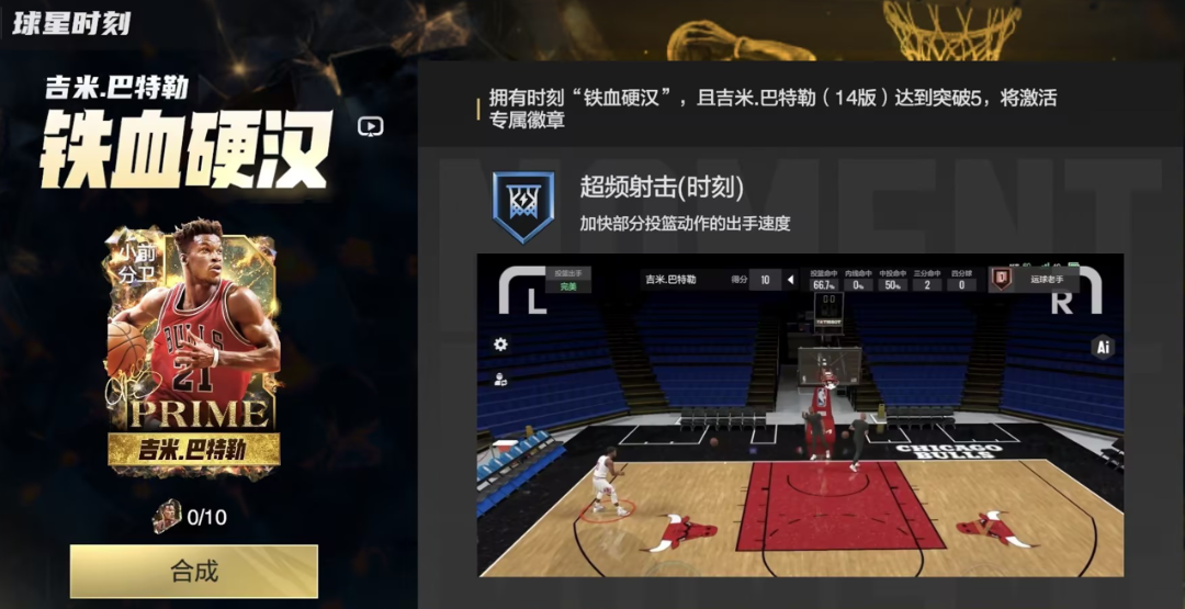 三分线内5块热区,搭配时刻专属徽章超频射击(时刻)加快投篮出手,突投结合让对手难以招架