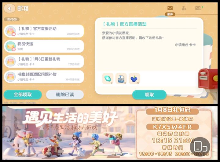 记得在当天晚上输入兑换码领取奖励