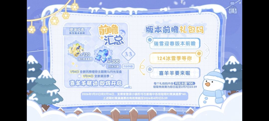 还有最后一个:瑞雪迎春版本前瞻,包含100蓝钻