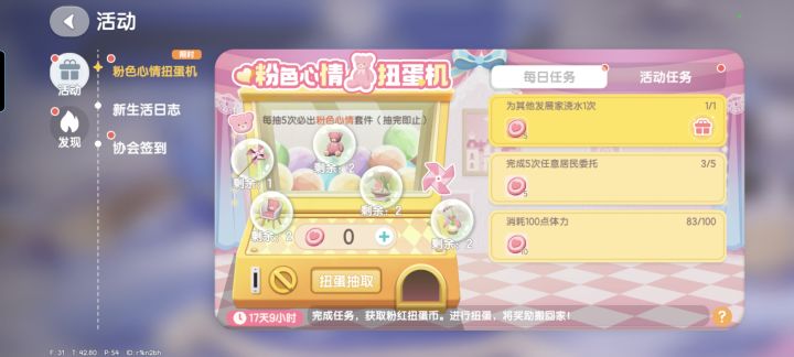 以及免费活动扭蛋池:粉色心情扭蛋机