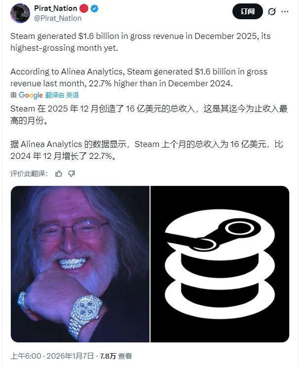 大的又又又出现拉家人们!谁知道Steam平台在2025年12月全球总收入达到16亿美元啊!