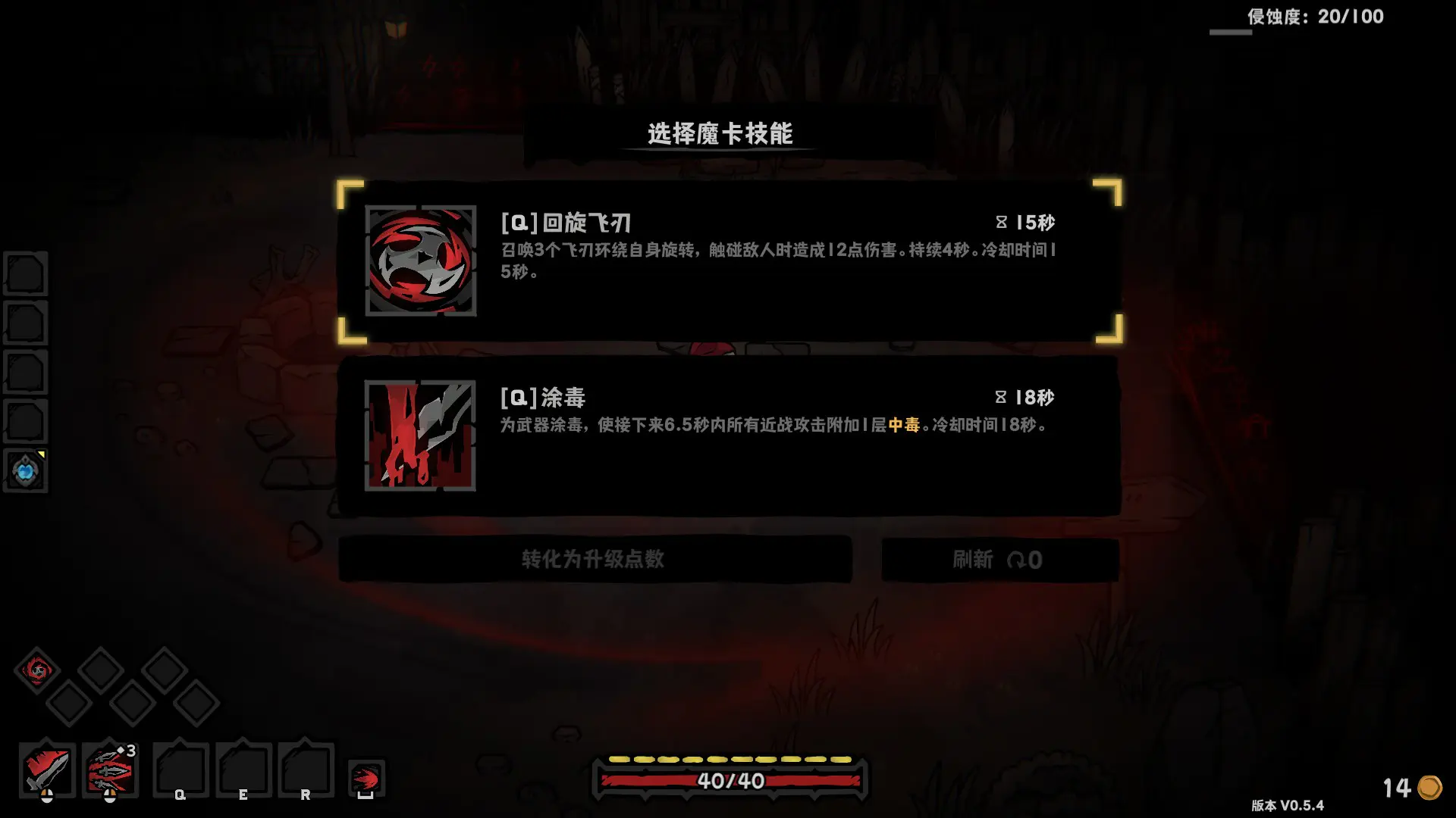 魔卡技能需要按键释放,比如获得召唤3个飞刃环绕自身选装,或者为武器涂毒等等的技能。也可以转化为升级点数,药水可以升级一个被动能力,在商店可以用金币购买各种道具,还有BOSS战斗,第一个BOSS就是会冲刺,射箭,释放多个光波的灰烬骑士团团长兼审判长德拉莫尔男爵,独特的攻击方式在战斗中可以判断时机。
