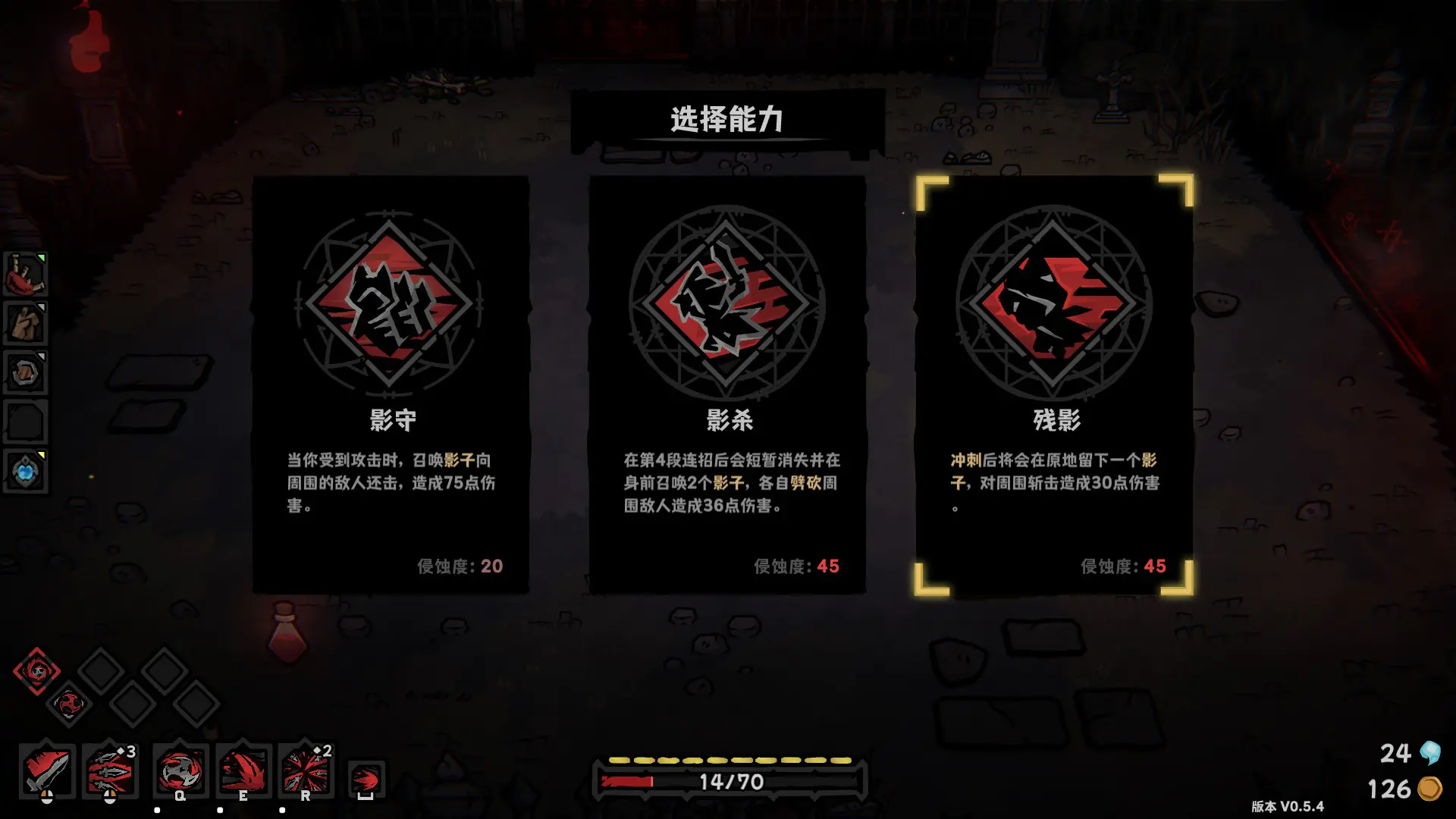 消灭全部敌人后会发现可以吸收的类似火焰的法力余烬,从三个能力中选择一个获得加成,比如劈砍造成伤害提高、连段最后的十字斩改为向前闪击以及冲刺时有几率投出一个飞轮,当然并不是并不是能力的完整描述,具体可以看图,或者进入游戏试玩亲自体验。之后在场景不同方向会出现下一关能获得的奖励,你可以选择自己想要的关卡进入。