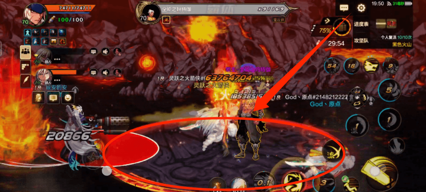 当玩家离开上图中标记的红圈时,就会持续受到火焰攻击,比如左边的大枪就在圈外面,脚下全是火焰攻击