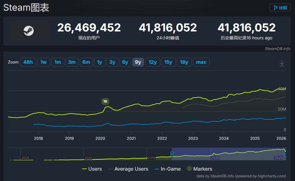 Steam在线峰值突破4181万大关,中国市场成最大推手