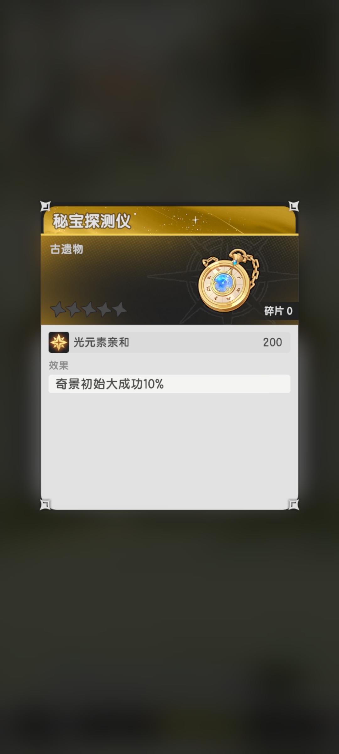 秘宝探测仪:紫色初始成功率8%,激活遗物后成功率18%,共鸣后20%