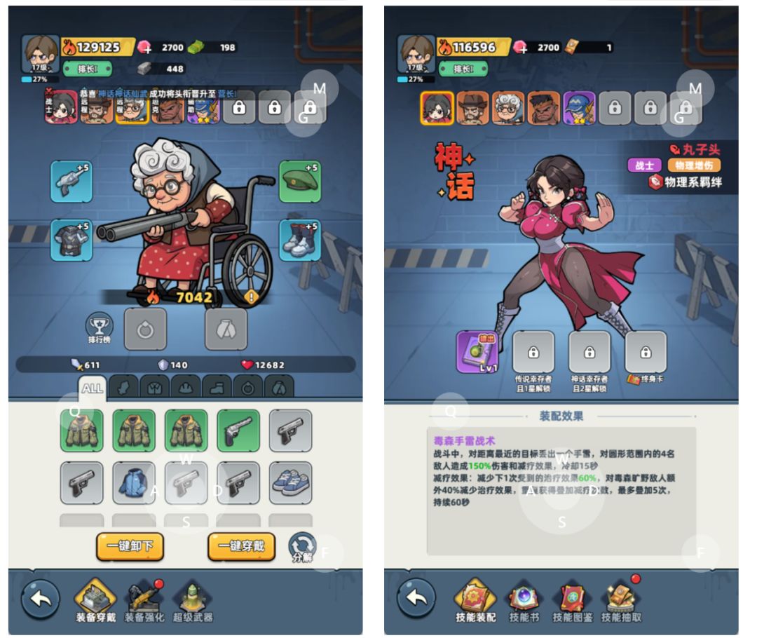 画风反而是做了复杂处理,在细节上增色不少,但整体还是以2D卡通为主。不管是小队角色还是怪物,都有简单直白的命名,像是“AK老奶”、“气球丧尸”、“电击丧尸”等,有趣又大大降低了理解负担。