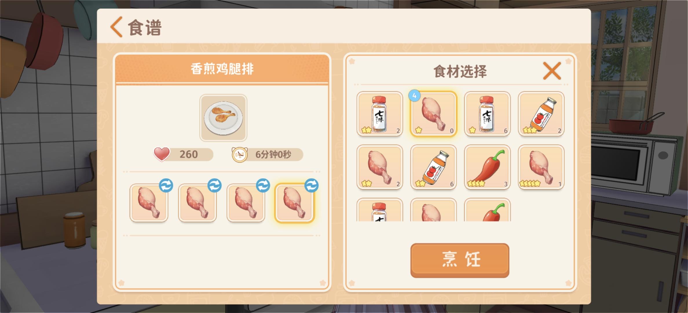同理其它菜品最后一味食材也可以换,因为我是刚刚发现,今天已经不能做了,所以没有尝试。