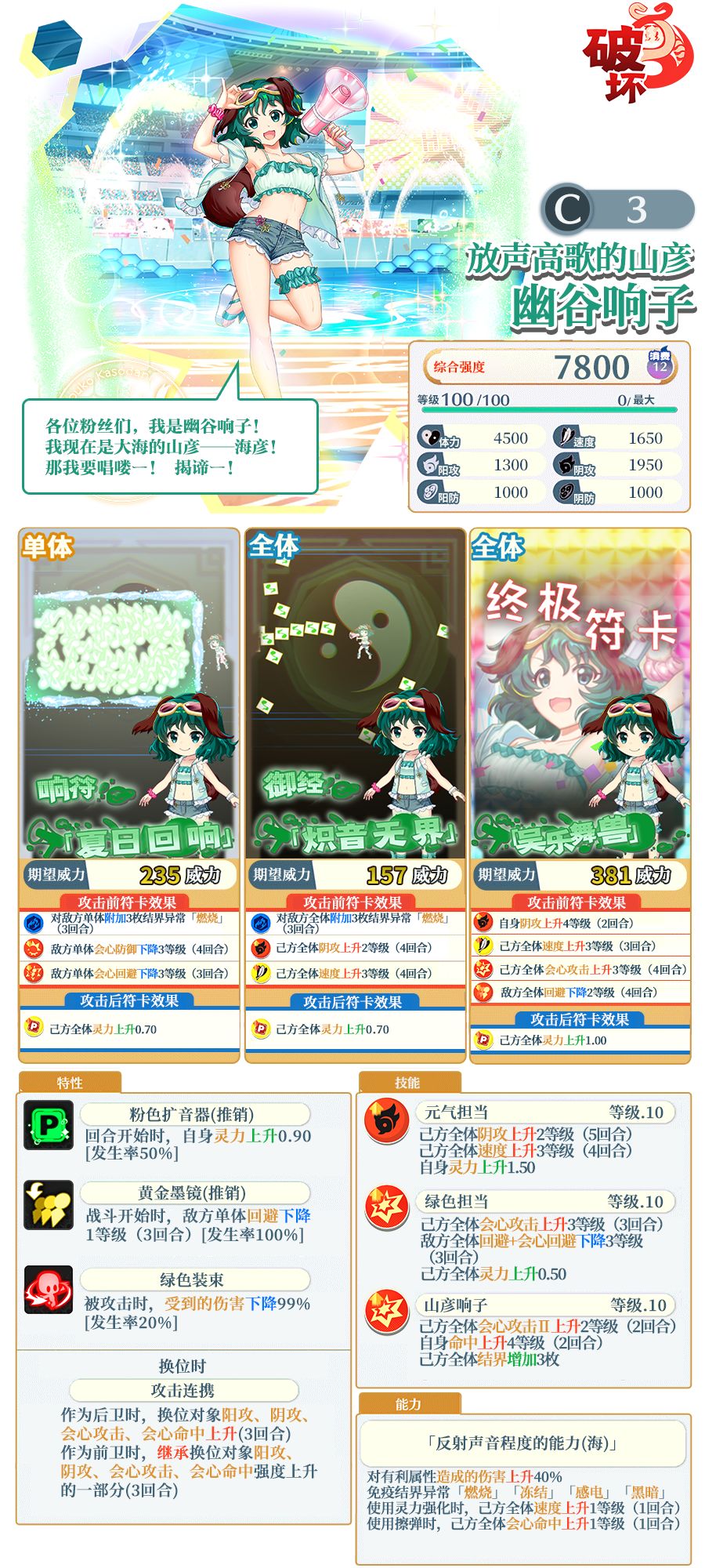 以下为伙伴技能及符卡介绍:
