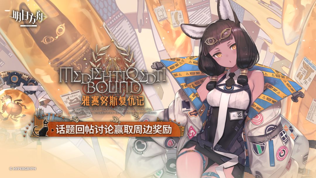 关注《明日方舟》游戏及「明日方舟PRTS活动速递」账号,在本帖内回复有关「雅赛努斯复仇记」活动中印象深刻的内容(包括但不限于版本PV、游戏剧情、喜欢的干员/时装、玩法体验等),即可参与话题评论抽奖。
