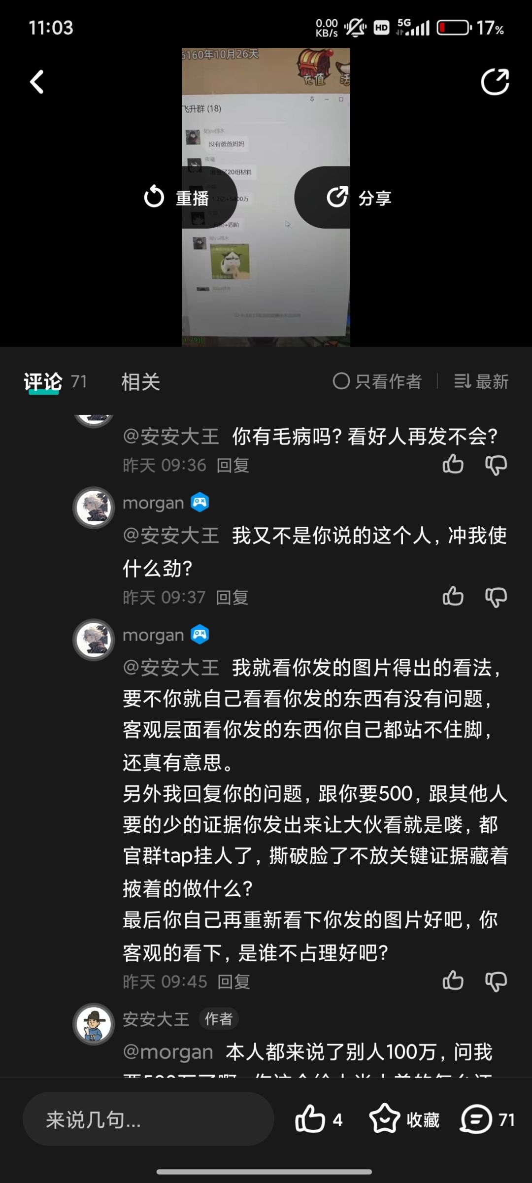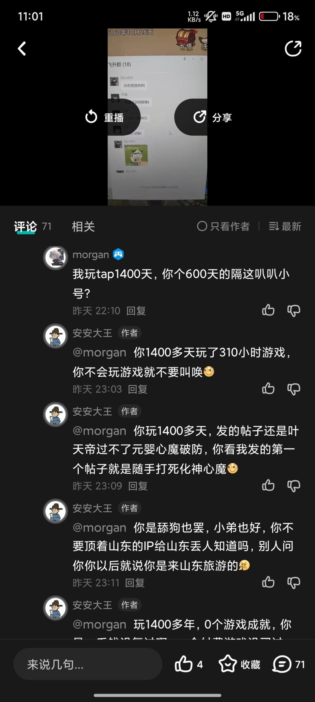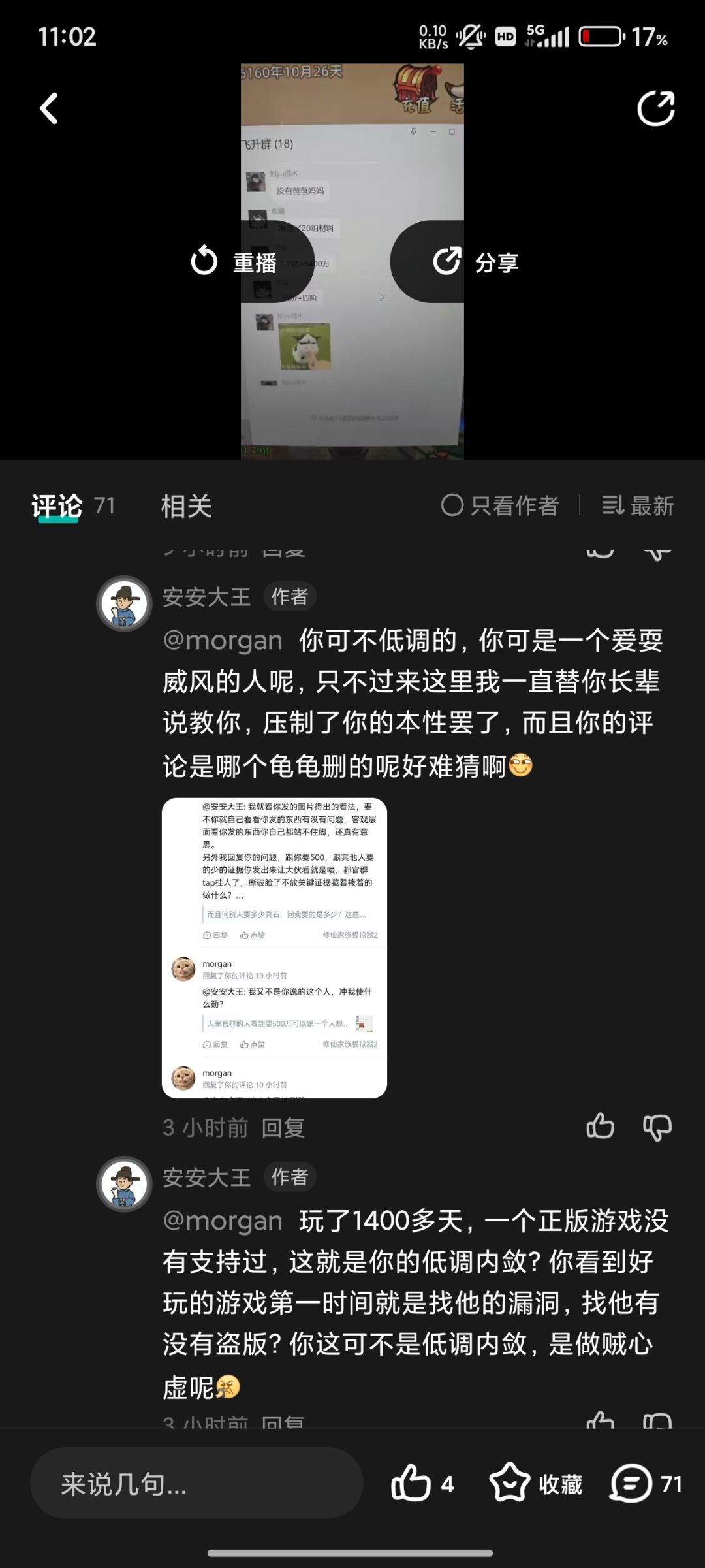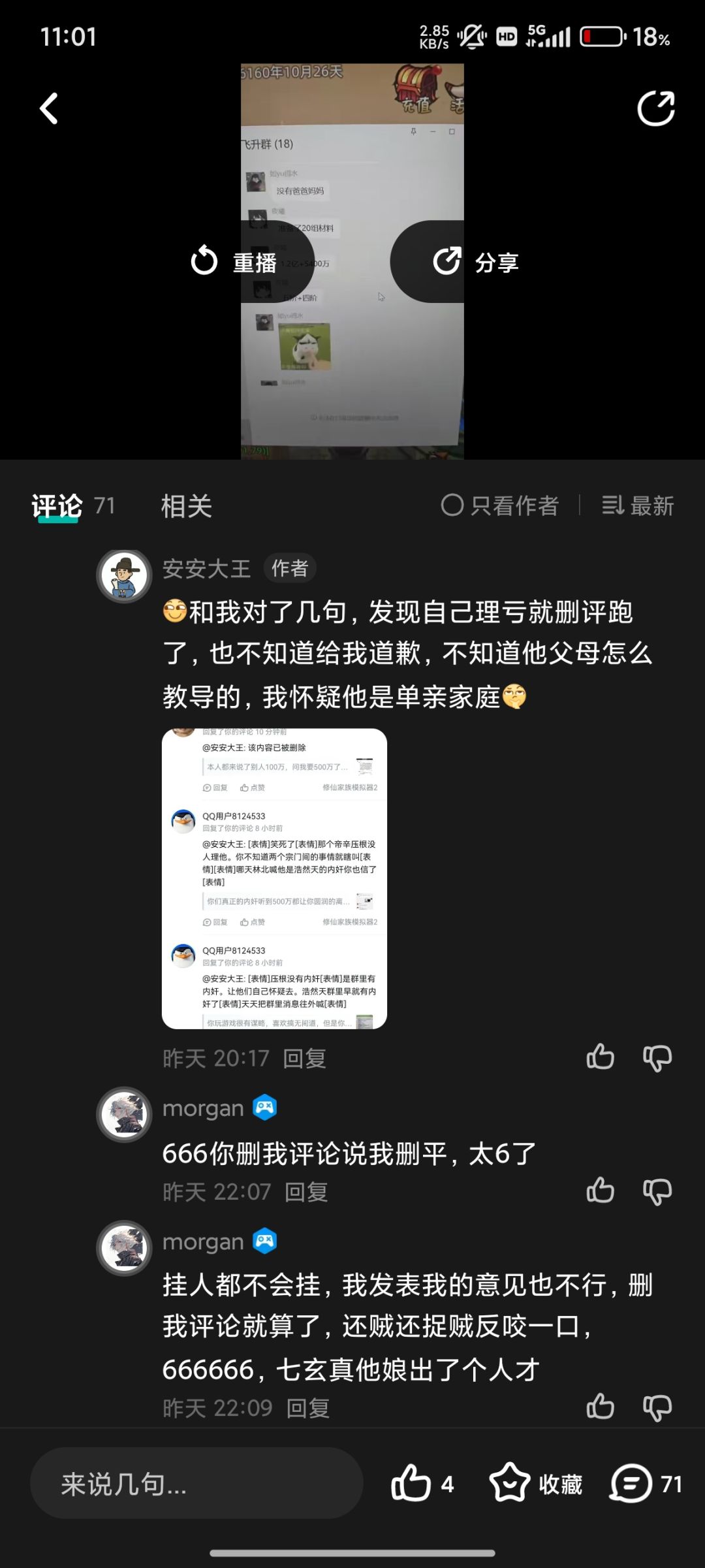 中间图片是贴主各种贬低我的评论,然后一直在强调我删评论跑路。(谁删评谁没户口簿,本人不怎么玩tap,不知道怎么删评。)各位有兴趣看看。