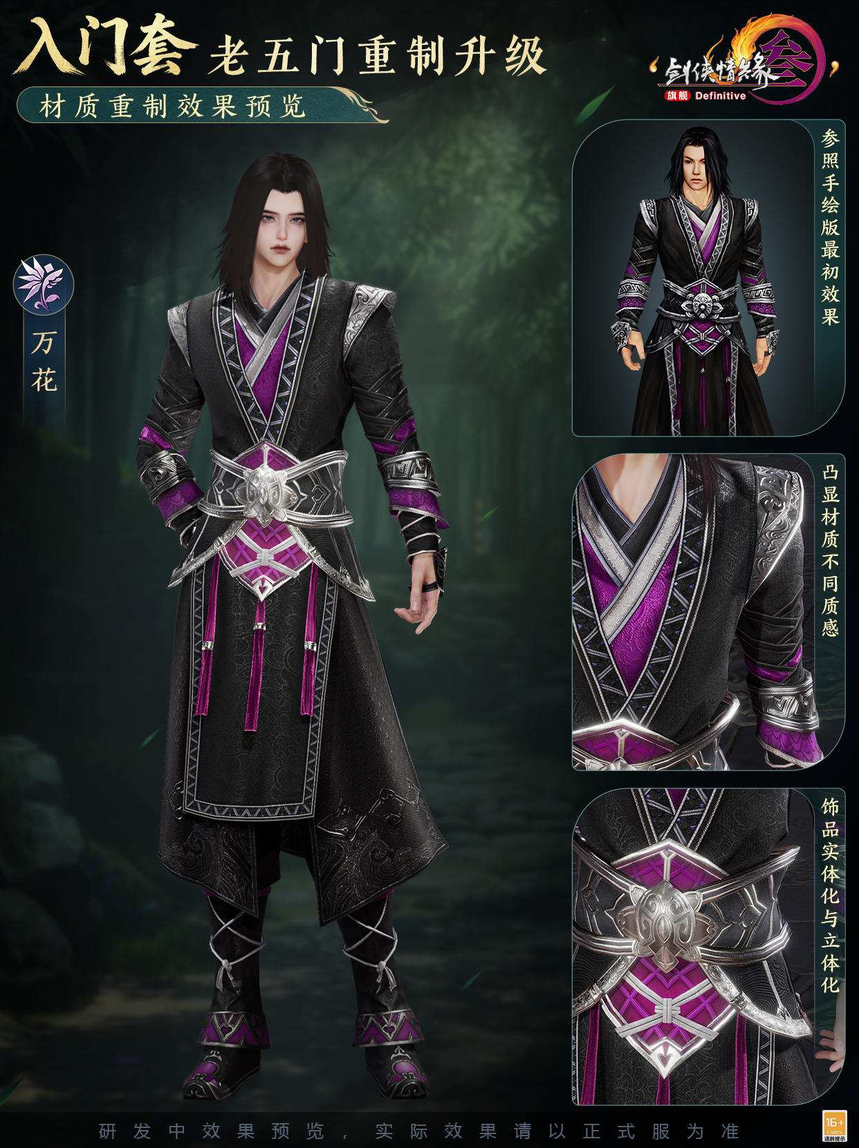 如果说校服是门派归属感的具象化体现,那么入门套则是侠士们初入武林、拜入师门的珍贵纪念。作为最早登场的一批校服,老五门的入门套已然陪伴我们度过十七载春秋,见证许多侠士从萌新到大侠的蜕变,也承载了许多人炽热的江湖梦。现如今,在材质不断迭代的当下也迎来升级,重新焕发鲜活的表现力!