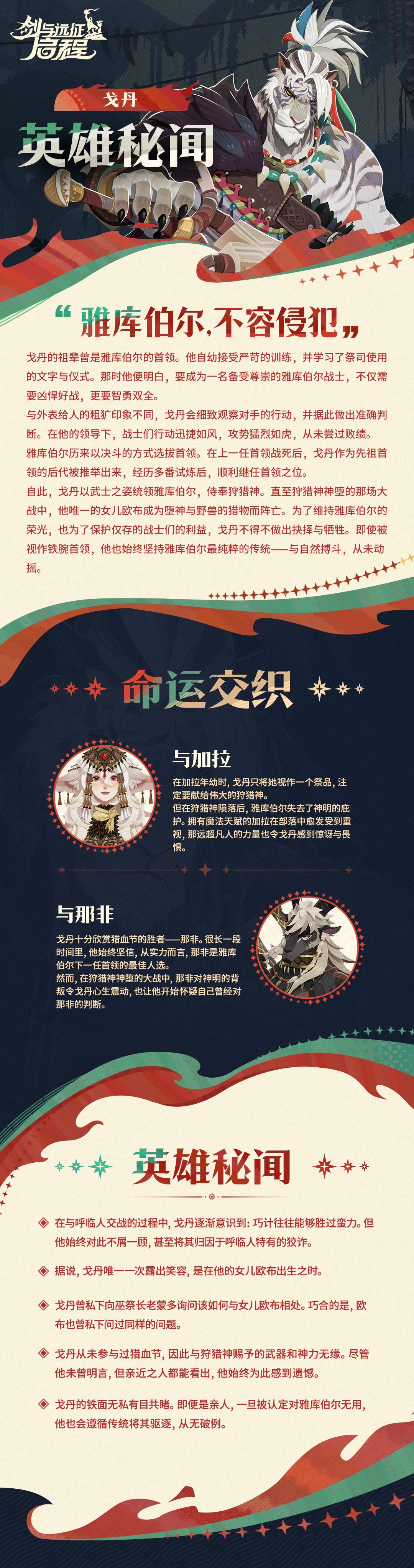 戈丹是雅库伯尔首领的后裔,他自幼接受严苛的训练,兼具战斗实力与智谋。在经历部落试炼后,他以武士之姿统领雅库伯尔,侍奉狩猎神。