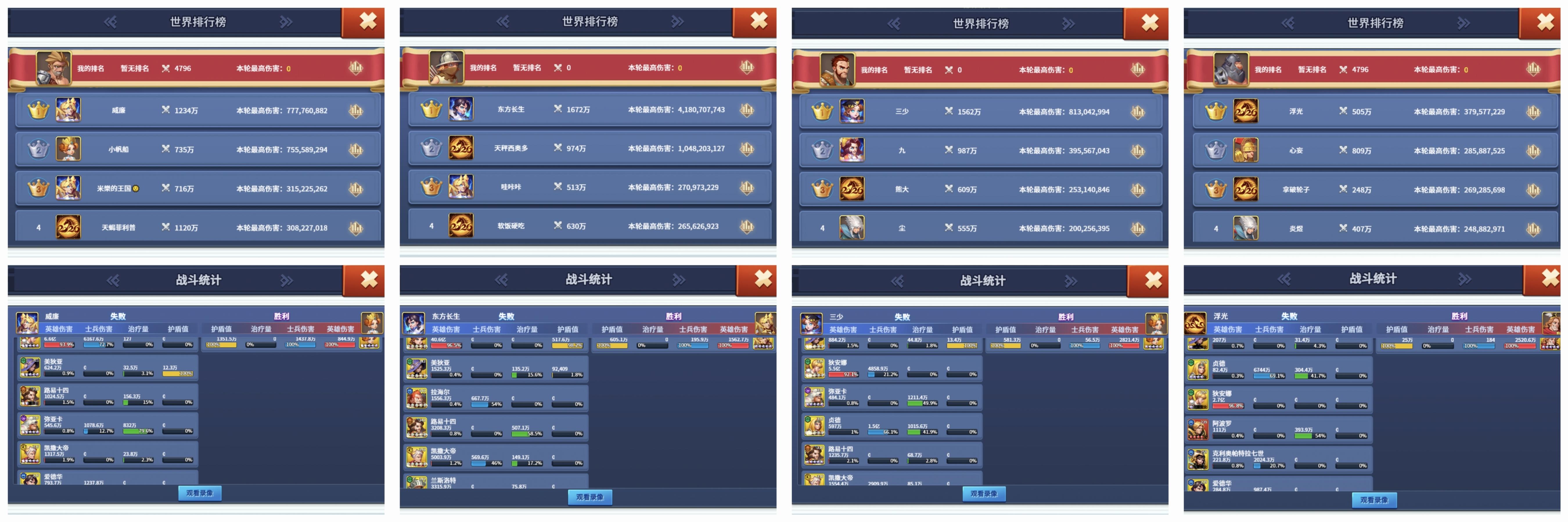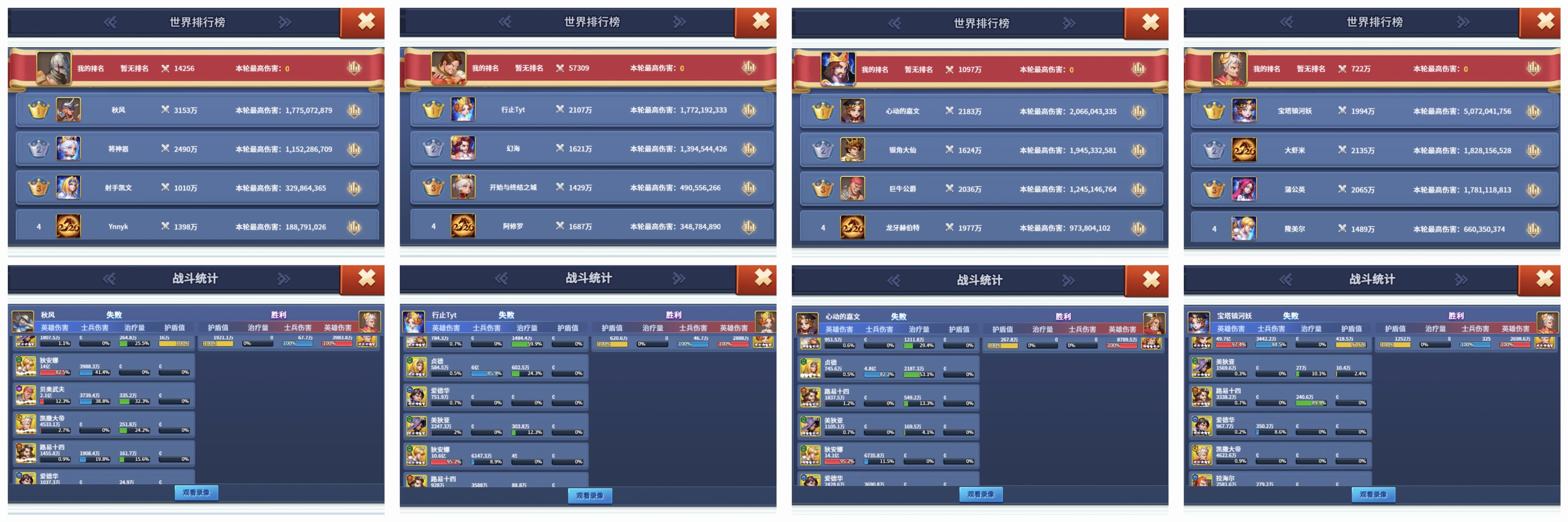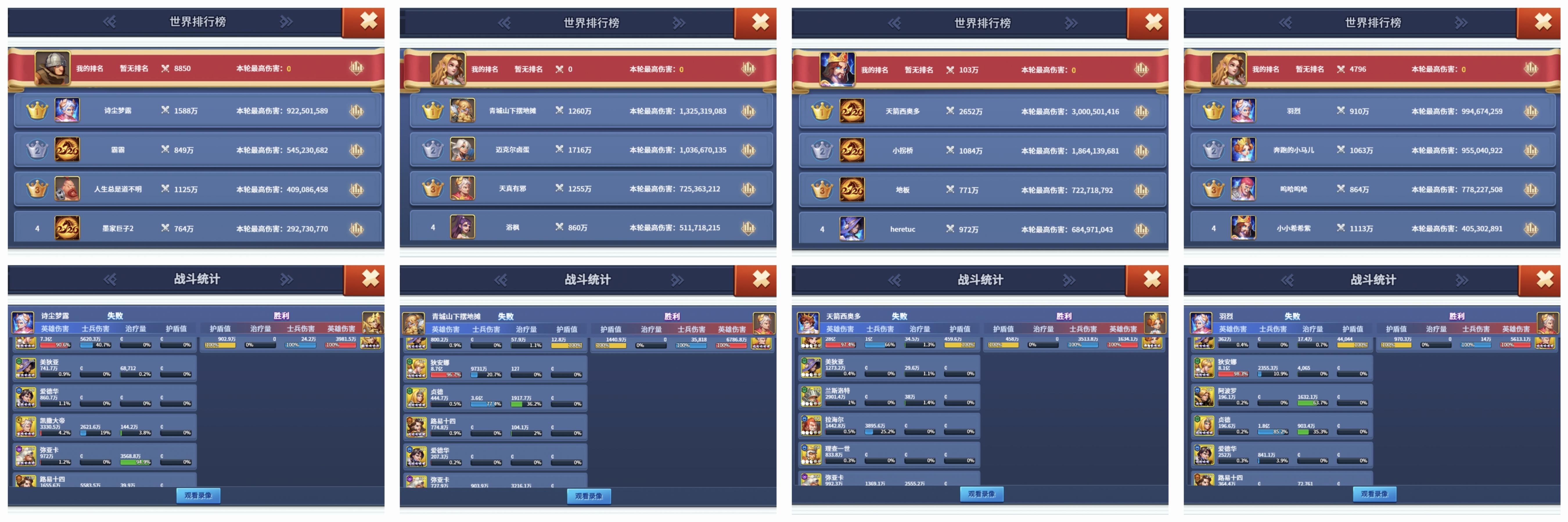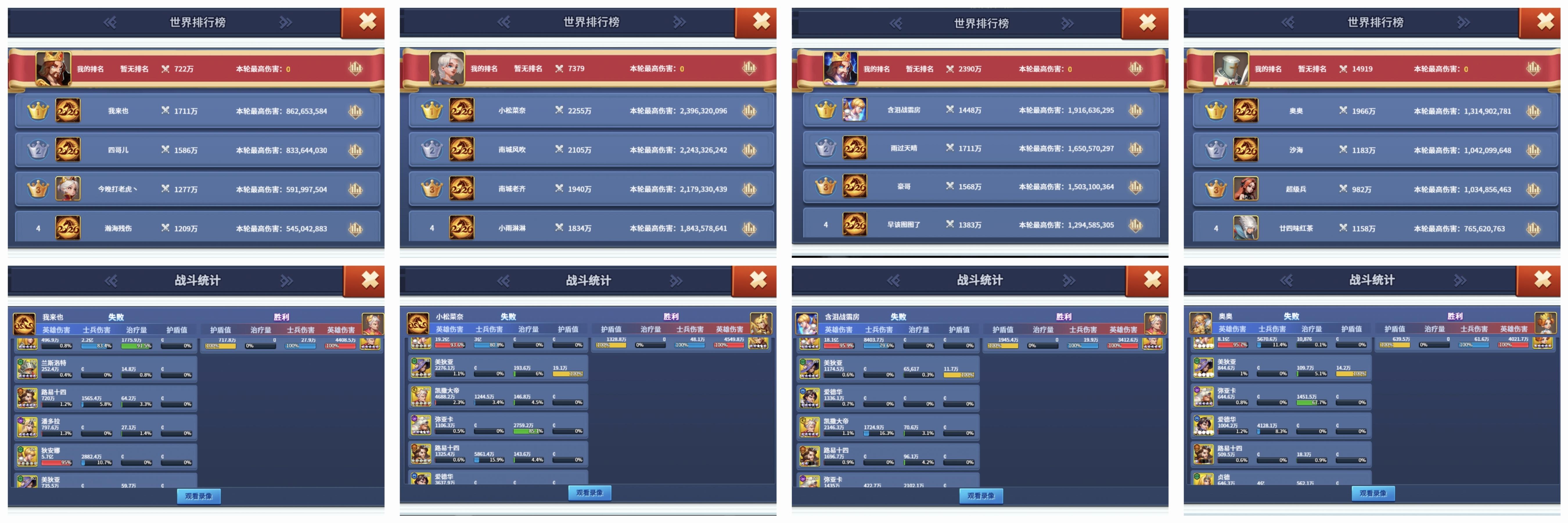数据来源:24个区(1-24区)挑战boss排行榜榜一玩家,24支队伍,截图如下: