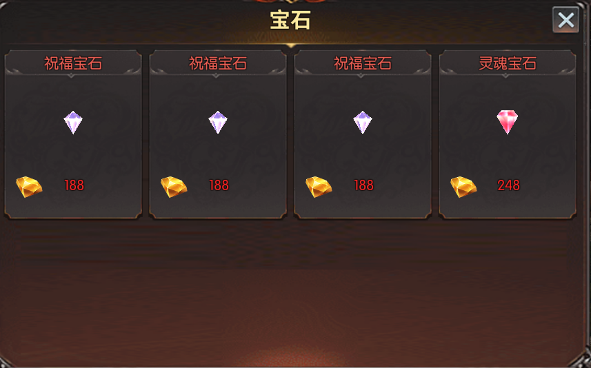 (一)宝石体系:从基础到稀缺的全链路价值宝石体系是游戏经济与玩家成长的核心支柱。与其他手游不同,《荣耀出征》所有核心宝石仅能通过游戏内玩法获取,商城绝不出售,从根源上保障了宝石价值和交易市场稳定。祝福宝石、灵魂宝石是装备强化必需品,需求贯穿全游戏周期,恶魔广场、世界BOSS是主要产出地,海底2层等地图掉落概率比普通地图高30%,形成稳定供需循环。
