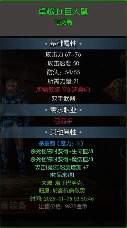 卓越装备是交易市场另一大“硬通货”,随机属性赋予其独特价值,野外刷怪、副本、世界BOSS均有掉落。减伤、卓越一击、幸运等优质属性的装备尤为抢手,3属性卓越装备更是可遇不可求的珍品。