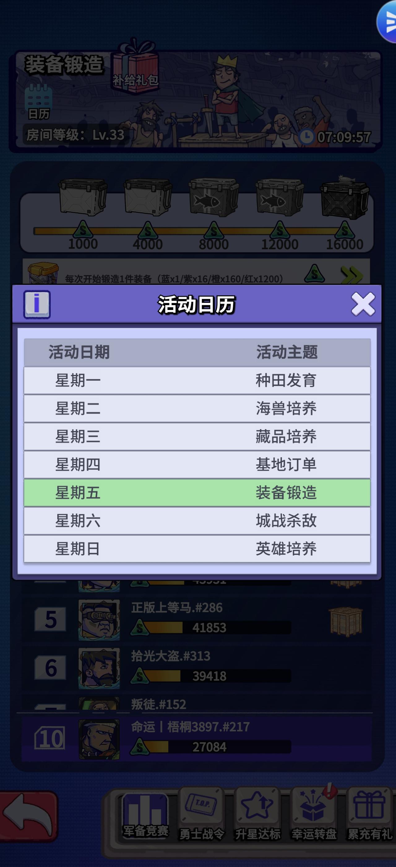 一共四周活动,每周的英雄都十分好用,平民玩家建议都给我抽到20抽,咱的钻石不要去加速抢巨轮,没用,就城站加速恢复刷功勋就完事儿。